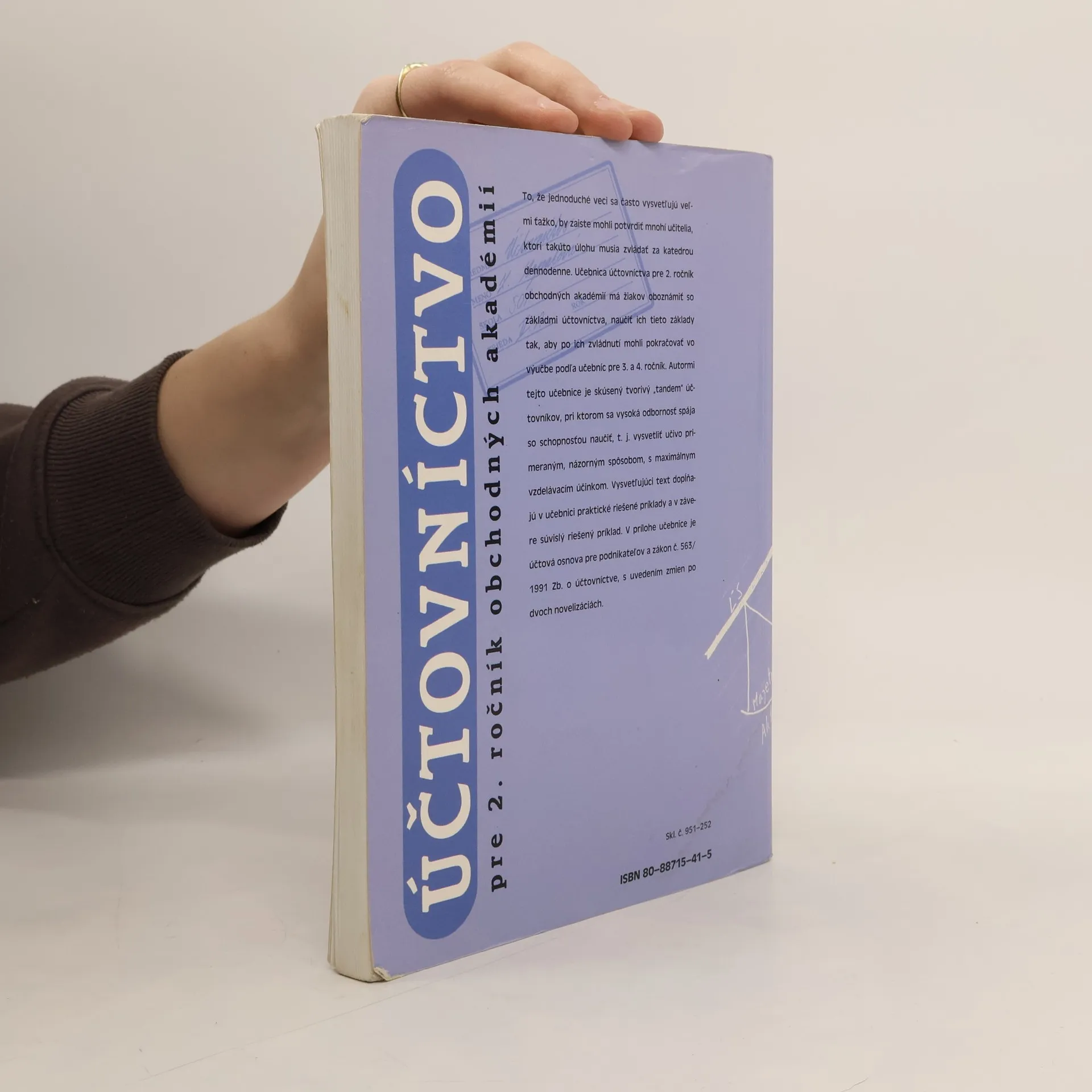 Učebnica účtovníctva, ktorá vyvolala veľmi priaznivý ohlas u učiteľov tohto predmetu i študentov na stredných školách. Účtovníctvo sa v nej vysvetľuje primeraným, názorným spôsobom, s maximálnym vzdelávacím účinkom.
