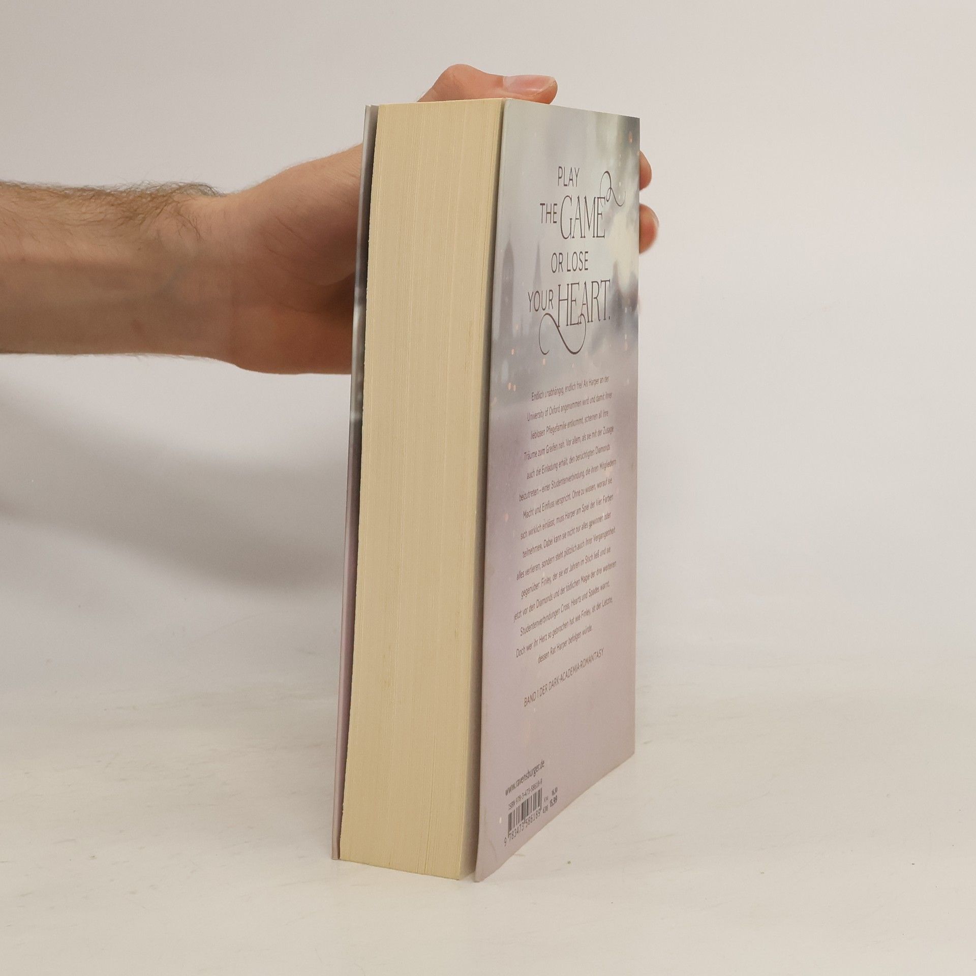 Band 1 der fesselnden Dark-Academia-Romantasy an der University of Oxford. Als Harper an der Universität angenommen wird, scheinen ihre Träume zum Greifen nah, besonders als sie die Einladung erhält, den berüchtigten Diamonds beizutreten – einer Studentenverbindung, die Macht und Einfluss verspricht. Plötzlich muss Harper am Spiel der Vier Farben teilnehmen und sich ihrer Vergangenheit stellen: Finley, der sie einst ohne Erklärung im Stich ließ, warnt sie nun vor der tödlichen Magie der Diamonds. Tauche ein in die Welt der vier magischen Studentenverbindungen Cross, Hearts, Diamonds und Spades, und in ein gefährliches Kartenspiel, das im echten Leben ausgetragen wird! In einer entscheidenden Szene denkt Harper über die Komplikationen ihrer Gefühle nach, während sie mit Finley konfrontiert wird. Sie spürt den bittersüßen Stich der Erinnerung, als sie sich wünscht, einen einzigen Tag ohne Angst vor Entdeckung zu verbringen. Die Anziehung zwischen ihnen ist stark, doch die Unsicherheiten ihrer Vergangenheit belasten sie. Finley gesteht seine Angst, Harper wieder zu verlieren, bevor sie sich wirklich gefunden haben. Inmitten von Intrigen und Magie steht das Herz der Protagonistin auf dem Spiel, während sie versucht, ihren Platz in dieser gefährlichen Welt zu finden.