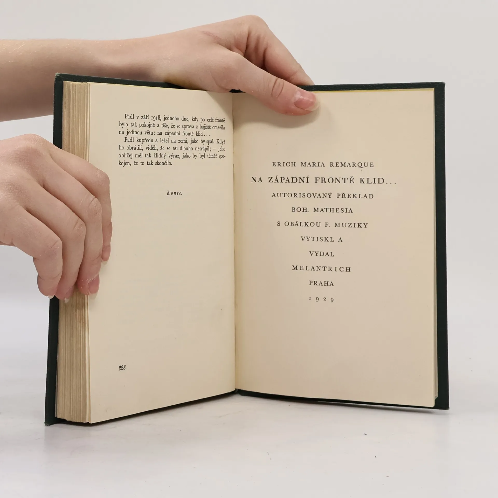 Nejslavnější autorův román z prostředí první světové války vypráví o generaci chlapců, kteří v roce 1914 rovnou ze školních lavic, s vlajícími prapory, nadšením a vojenskou hudbou, táhli na frontu, odkud se vrátili zničeni na duchu i na těle, přestože unikli smrtícím granátům. Mladí lidé, vychovaní svými učiteli k tomu, že umírání na bojišti je svatou povinností a otázkou cti, poznali skutečnou tvář nesmyslné války, a pokud se z ní někteří vrátili, nedokázali zakotvit v novém životě, nechápali ho - příliš děsivé byly zážitky ze zákopů, příliš živé vzpomínky na padlé kamarády. Román je krutou obžalobou a pravdivým obrazem tragédie války, která nezabíjí jednotlivce, ale mrzačí celé generace - nejstrašnější totiž není výbuch granátu, ale zasažené lidské srdce… Vydavatel: Melantrich - Praha