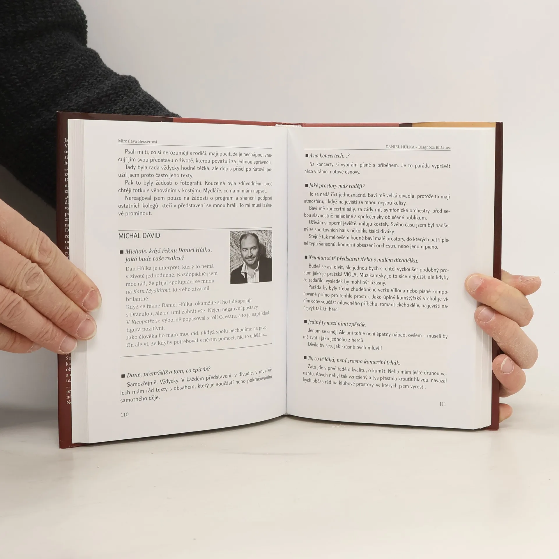 Netradiční biografie Daniela Hůlky z pera Miroslavy Besserové, v níž nám autorka formou otázek a odpovědí plasticky přibližuje osobnost tohoto populárního umělce, narozeného ve znamení Blížence, jeho profesní, ale i soukromý život. Vystudoval operní zpěv, ale jako protagonista muzikálu Dracula se natolik proslavil a zapsal do povědomí diváků, že se od té doby věnuje především muzikálům. Kdo by neznal v jeho podání Cyrana z Bergeraku, Kata Mydláře, Caesara či Barona Prášila?