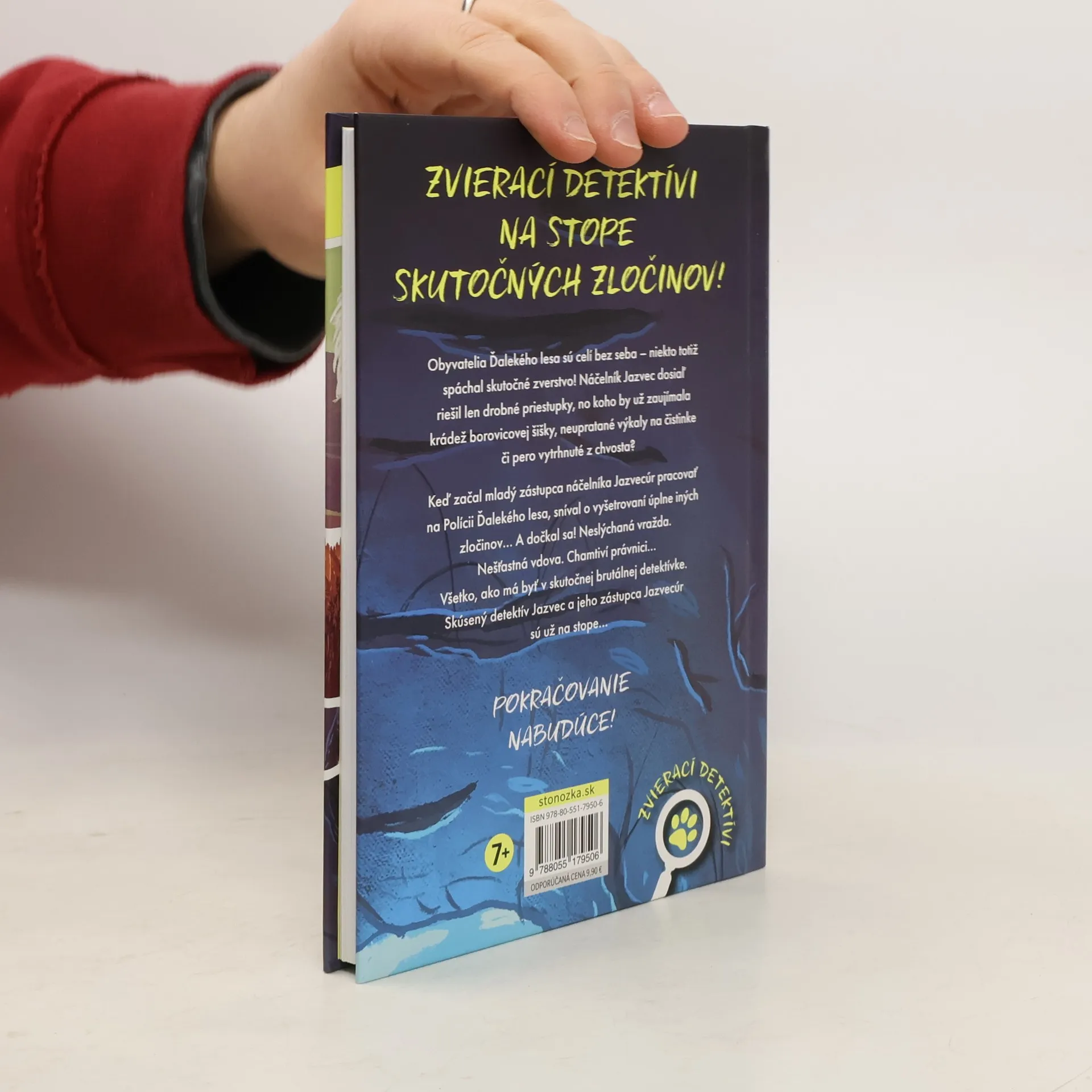 Zvierací detektívi na stope skutočných zločinov! Obyvatelia Ďalekého lesa sú celí bez seba – niekto totiž spáchal skutočné zverstvo! Náčelník Jazvec dosiaľ riešil len drobné priestupky, no koho by už zaujímala krádež borovicovej šišky, neupratané výkaly na čistinke či pero vytrhnuté z chvosta? Keď začal mladý zástupca náčelníka Jazvecúr pracovať na Polícii Ďalekého lesa, sníval o vyšetrovaní úplne iných zločinov... A dočkal sa! Neslýchaná vražda. Nešťastná vdova. Chamtiví právnici... Všetko, ako má byť v skutočnej brutálnej detektívke. Skúsený detektív Jazvec a jeho zástupca Jazvecúr sú už na stope... Anna Starobinec stihla vystriedať niekoľko profesií, kým prišla na to, že zo všetkého najviac ju baví vymýšľať príbehy, ktoré čitateľov úplne opantajú. Dnes sa jej knihy prekladajú do mnohých jazykov, získavajú literárne ceny a nakrúcajú sa podľa nich filmy. Pre dospelých čitateľov píše podmanivé strašidelné príbehy, vďaka ktorým si vyslúžila prezývku „ruský Stephen King“. Jej rozprávky pre deti nie sú také strašidelné, ale rovnako strhujúce. Pre čitateľov od 7 rokov