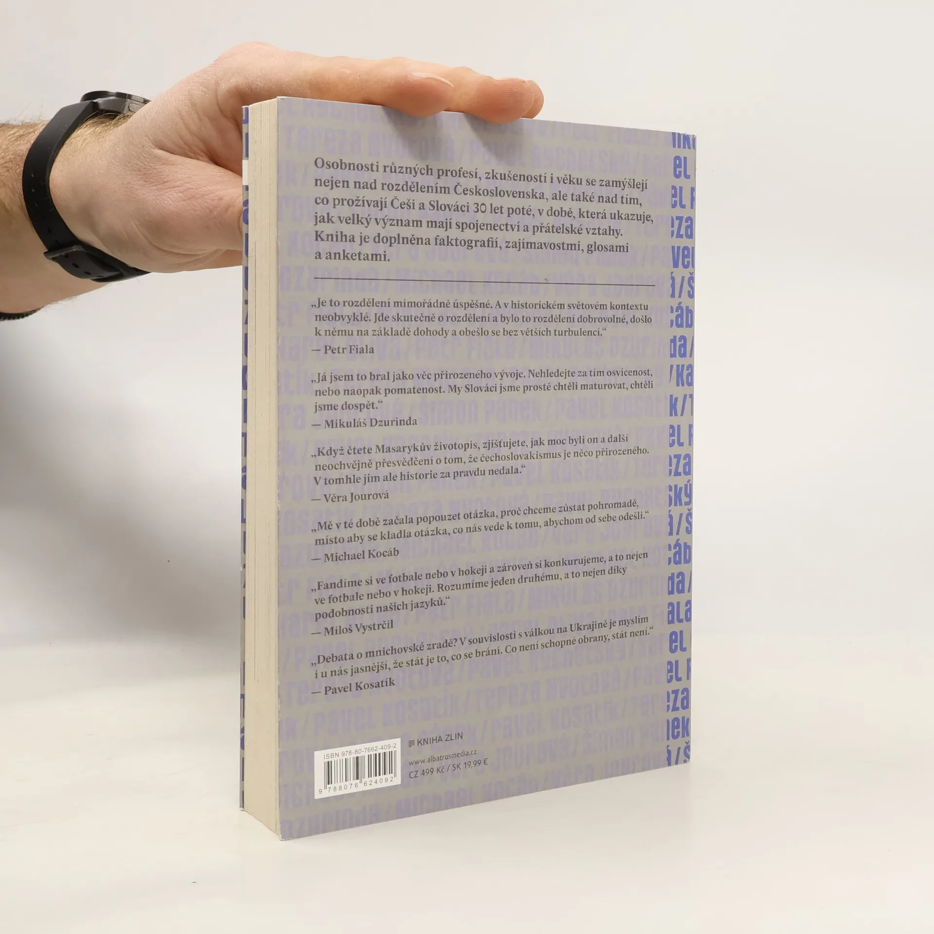 Osobnosti různých profesí, zkušeností a věku – Petr Fiala, Mikuláš Dzurinda, Michael Kocáb, Věra Jourová, Šimon Pánek, Pavel Kosatík, Tereza Nvotová, Pavel Rychetský, Karel Oliva – se zamýšlejí nejen nad rozdělením Československa, ale také nad tím, co prožívají Češi a Slováci 30 let poté, v době, která ukazuje, jak velký význam mají spojenectví a přátelské vztahy. Kniha je doplněna faktografií, zajímavostmi a glosami dalších osobností.