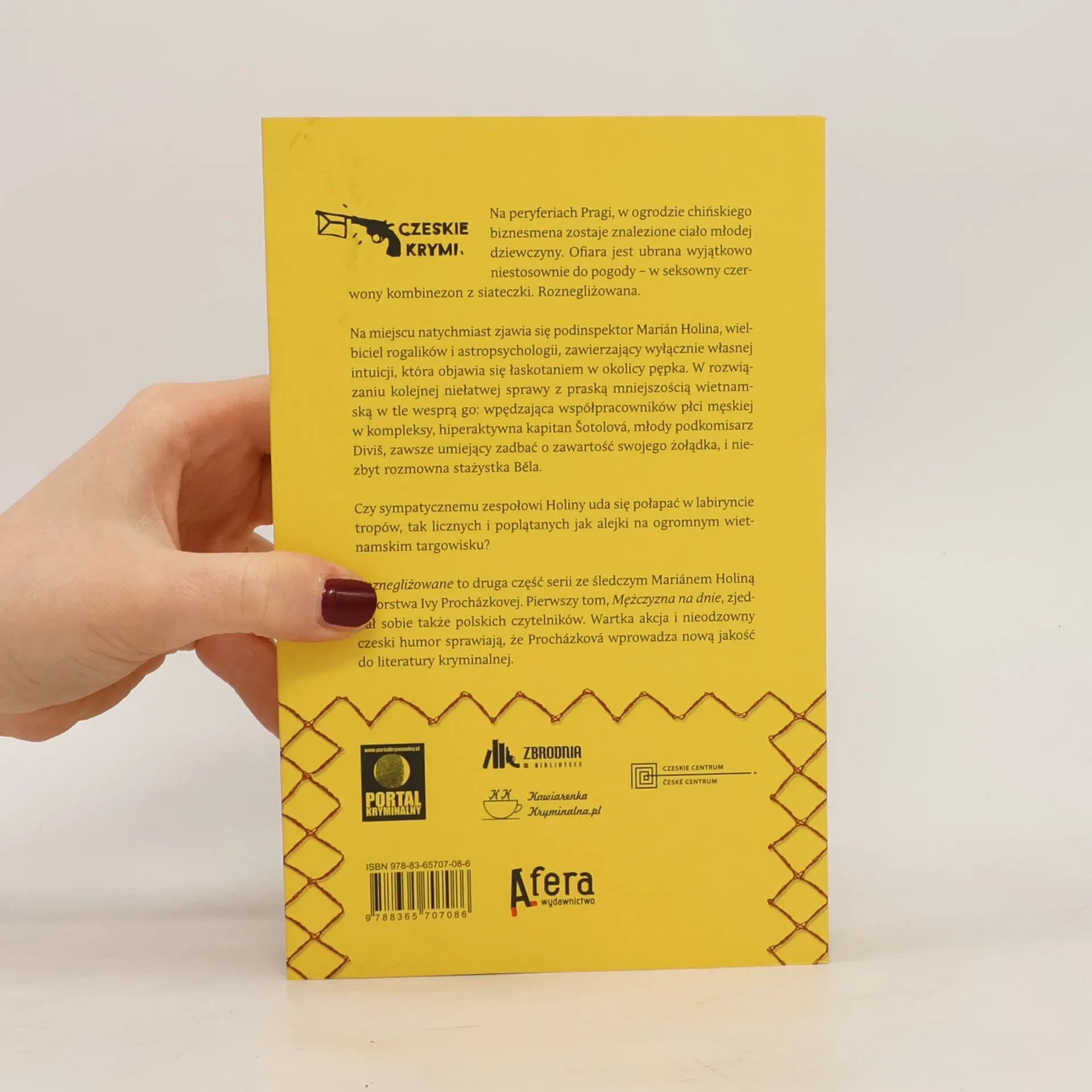 Drugi tom serii kryminalnej z Mariánem Holiną Na peryferiach Pragi, w ogrodzie chińskiego biznesmena zostaje znalezione ciało młodej dziewczyny. Ofiara jest ubrana wyjątkowo niestosownie do pogody – w seksowny czerwony kombinezon z siateczki. Roznegliżowana. Na miejscu natychmiast zjawia się podinspektor Marián Holina, wielbiciel rogalików i astropsychologii, zawierzający wyłącznie własnej intuicji, która objawia się łaskotaniem w okolicy pępka. W rozwiązaniu kolejnej niełatwej sprawy z praską mniejszością wietnamską w tle wesprą go: wpędzająca współpracowników płci męskiej w kompleksy, hiperaktywna kapitan Šotolová, młody podkomisarz Diviš, zawsze umiejący zadbać o zawartość swojego żołądka, i niezbyt rozmowna stażystka Běla. Czy sympatycznemu zespołowi Holiny uda się połapać w labiryncie tropów, tak licznych i poplątanych jak alejki na ogromnym wietnamskim targowisku? Roznegliżowane to druga część serii ze śledczym Mariánem Holiną autorstwa Ivy Procházkovej. Pierwszy tom, Mężczyzna na dnie zjednał sobie także polskich czytelników. Wartka akcja i nieodzowny czeski humor sprawiają, że Procházková wprowadza nową jakość do literatury kryminalnej.