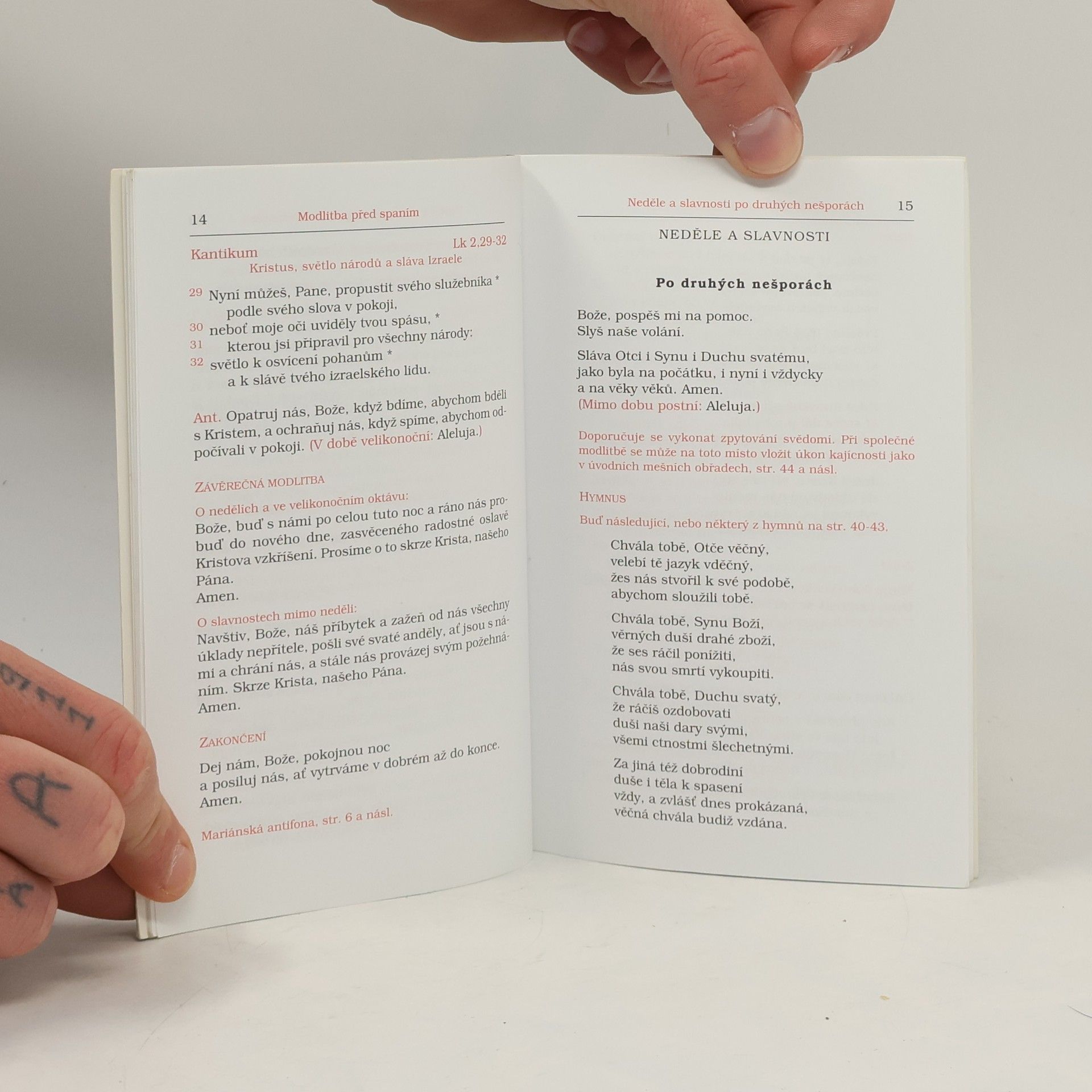 Samostatně vydaná modlitba "kompletáře" - část liturgie hodin, modlitba před spaním.