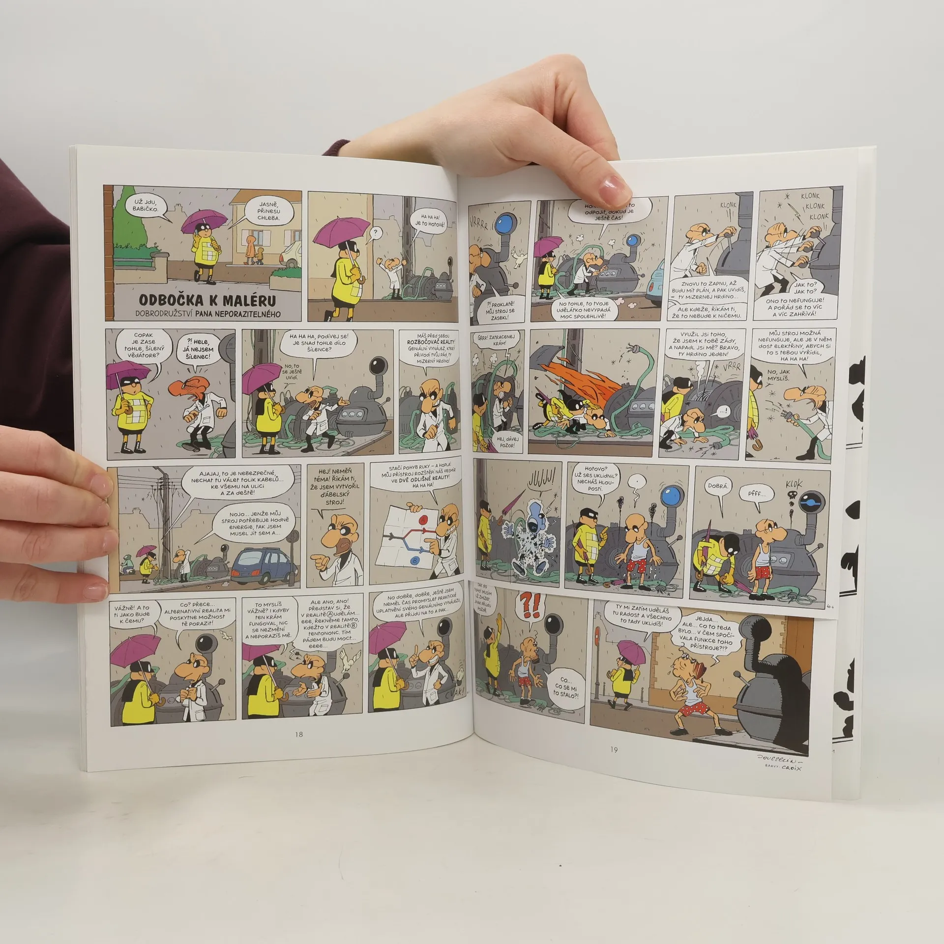Dobrodružství pana Neporazitelného neberou konce! Náš jediný a skutečný komiksový hrdina se umí pohybovat mimo panely i stránky svého stripu a porušovat zákony „komiksové fyziky“! Ve druhém dílu svých příběhů se znovu utká se Šprýmařem, potká mimozemšťana a střihne si s kamarády i komiksovou „týmovku“, samozřejmě v Americe. Ostatně proč ne, když se tam podívali i četníci ze Saint-Tropez…