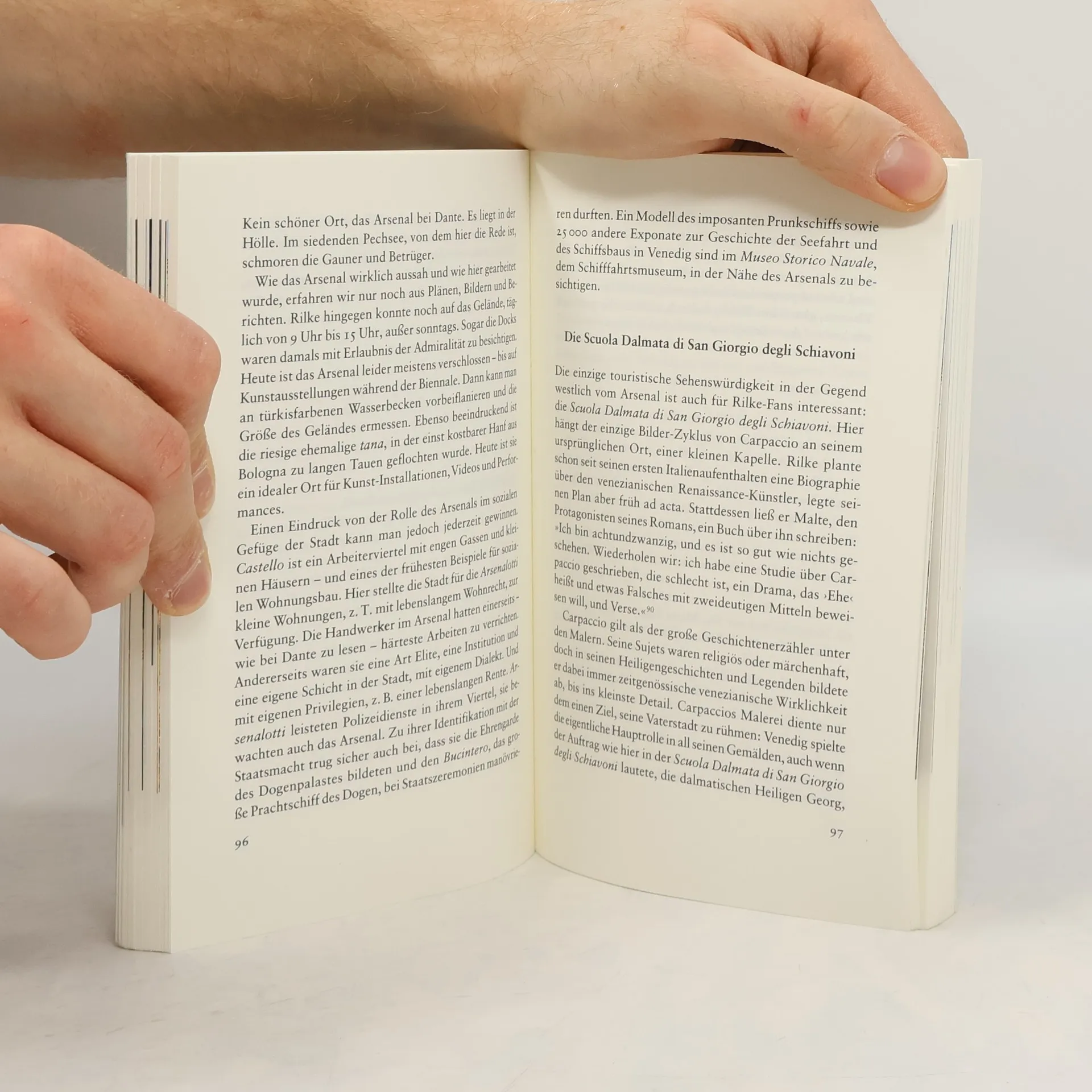 Venedig wird in diesem Werk als inspirierender Ort für Rainer Maria Rilke dargestellt, der ihm als "schönes Gegengewicht der Welt" dient. Die Stadt wird nicht nur als geografischer Raum, sondern auch als Quelle poetischer Inspiration und kultureller Reflexion beschrieben. Rilkes Beziehung zu Venedig offenbart seine tiefen emotionalen und künstlerischen Empfindungen, die durch die einzigartige Atmosphäre und das historische Erbe der Stadt geprägt sind.