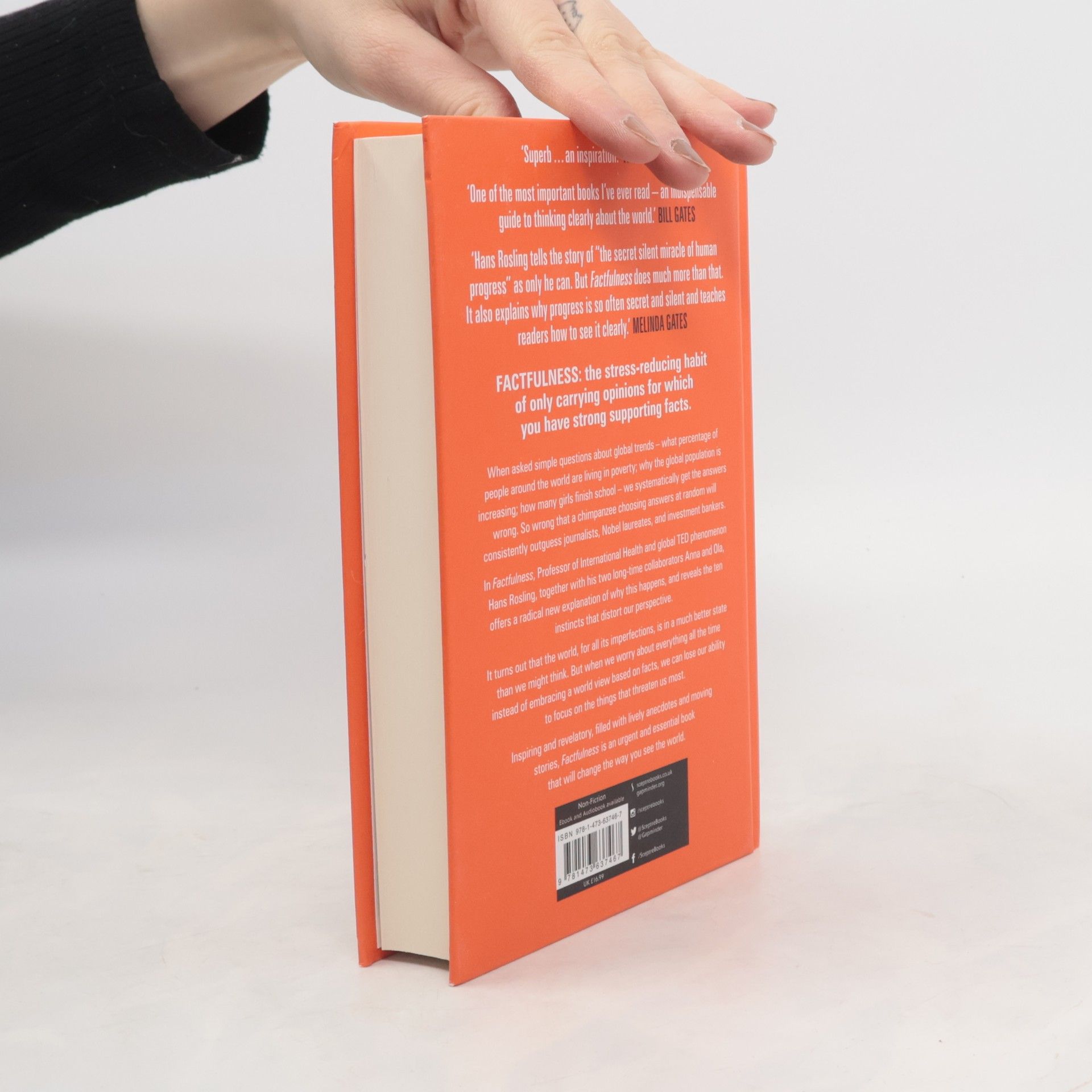 Factfulness: The stress-reducing habit of only carrying opinions for which you have strong supporting facts. When asked simple questions about global trends - why the world's population is increasing; how many young women go to school; how many of us live in poverty - we systematically get the answers wrong. So wrong that a chimpanzee choosing answers at random will consistently outguess journalists, Nobel laureates, and investment bankers. In Factfulness, Professor of International Health and a man who can make data sing, Hans Rosling, together with his two long-time collaborators Anna and Ola, offers a radical new explanation of why this happens, and reveals the ten instincts that distort our perspective. It turns out that the world, for all its imperfections, is in a much better state than we might think. But when we worry about everything all the time instead of embracing a worldview based on facts, we can lose our ability to focus on the things that threaten us most. Inspiring and revelatory, filled with lively anecdotes and moving stories, Factfulness is an urgent and essential book that will change the way you see the world