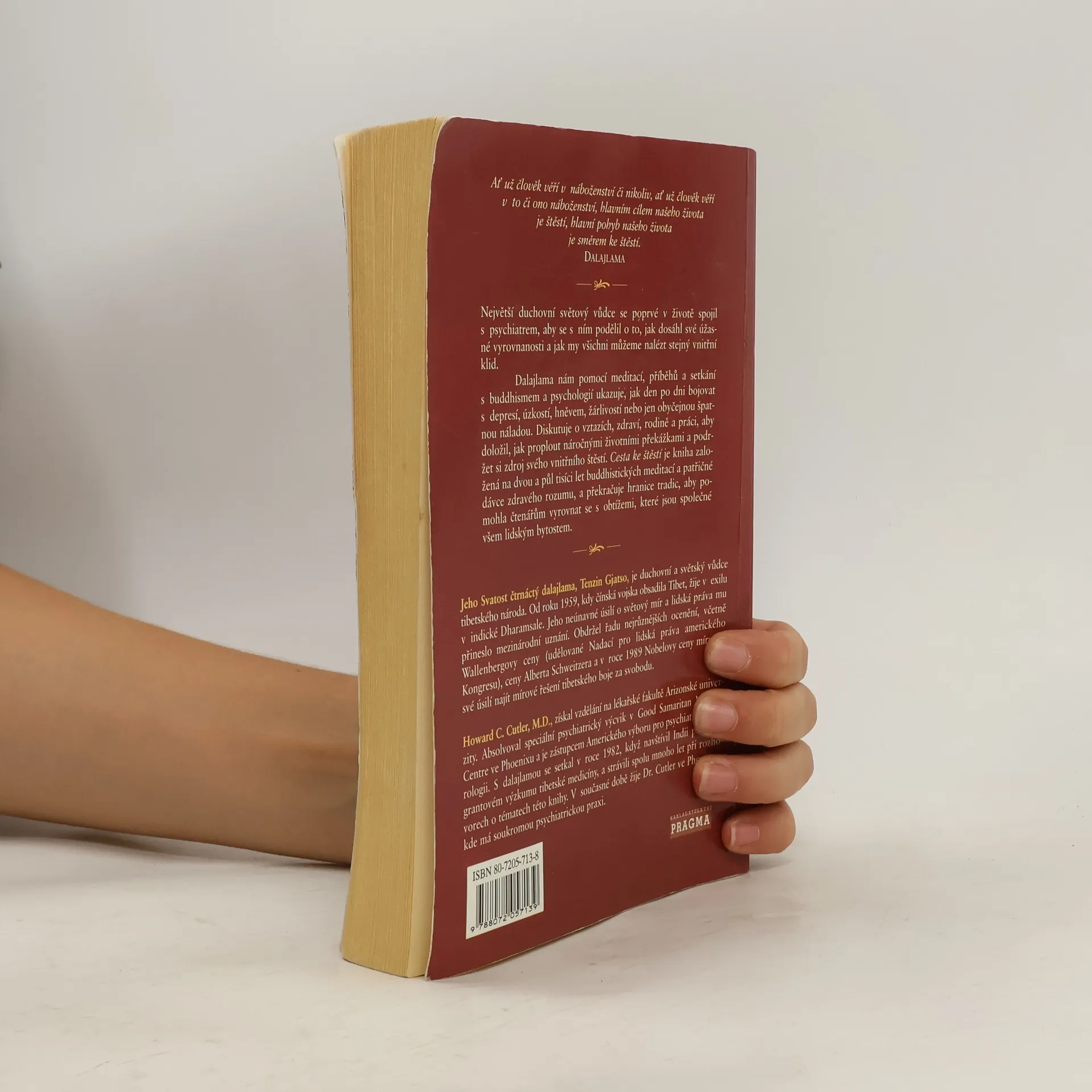 Dalajlama pomocí meditací, příběhů a setkání s buddhismem a psychologií ukazuje, jak den po dni bojovat s depresí, úzkostí, hněvem, žárlivostí nebo jen obyčejnou špatnou náladou. Největší duchovní světový vůdce se poprvé v životě spojil s psychiatrem, aby se s ním podělil o to, jak dosáhl své úžasné vyrovnanosti a jak my všichni můžeme nalézt stejný vnitřní klid. Dalajlama nám pomocí meditací, příběhů a setkání s buddhismem a psychologií ukazuje, jak den po dni bojovat s depresí, úzkostí, hněvem, žárlivostí nebo jen obyčejnou špatnou náladou. Diskutuje o vztazích, zdraví, rodině a práci, aby doložil, jak proplout náročnými životními překážkami a podržet si zdroj svého vnitřního štěstí. Kniha je založená na dvou a půl tisíci let buddhistických meditací a patřičné dávce zdravého rozumu a překračuje hranice tradic, aby pomohla čtenářům vyrovnat se s obtížemi, které jsou společné všem lidským bytostem.
