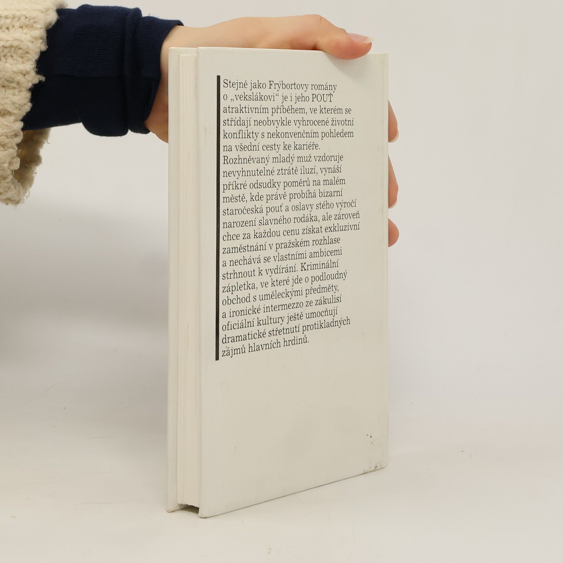 Atraktivní příběh, ve kterém se střídají neobvykle vyhrocené životní konflikty s nekonvenčním pohledem na všední cesty ke kariéře. Rozhněvaný mladý muž vzdoruje nevyhnutelné ztrátě iluzí, vynáší příkré odsudky poměrů na malém městě, kde právě probíhá bizarní staročeská pouť a oslavy 100. výročí narození slavného rodáka, ale zároveň chce za každou cenu získat exkluzivní zaměstnání v pražském rozhlase a nechává se vlastními ambicemi strhnout k vydírání. Kriminální zápletka, ve které jde o podloudný obchod s uměleckými předměty, a ironické intermezzo ze zákulisí oficiální kultury ještě umocňují dramatické střetnutí protikladných zájmů hlavních hrdinů.