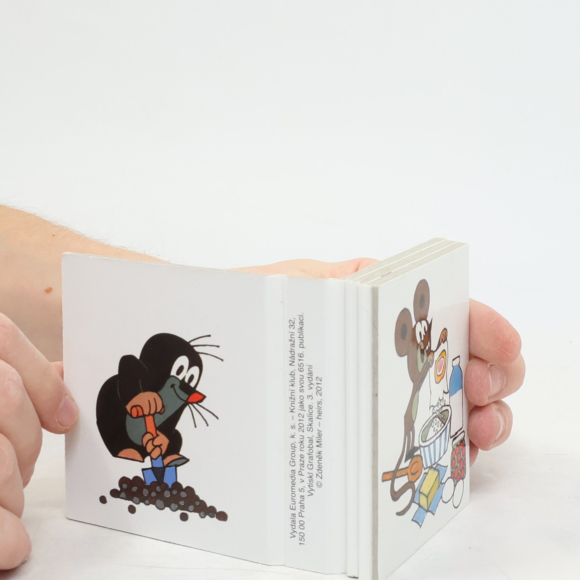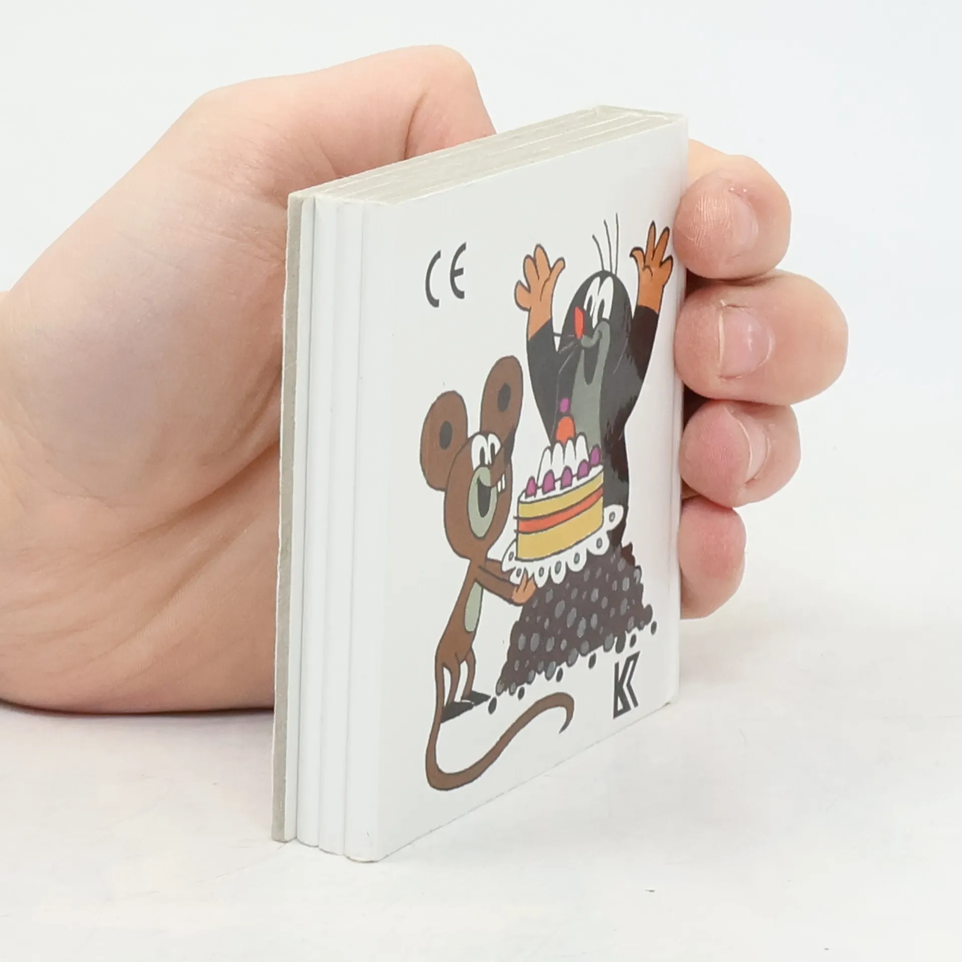 Malé leporelo, určené nejmenším čtenářům, je uceleným seriálem obrázků o tom, jak Krtek slavil narozeniny a myška mu přišla popřát s překrásným dortem. Při popisu ilustrací rozvíjí dítě základní slovní zásobu.