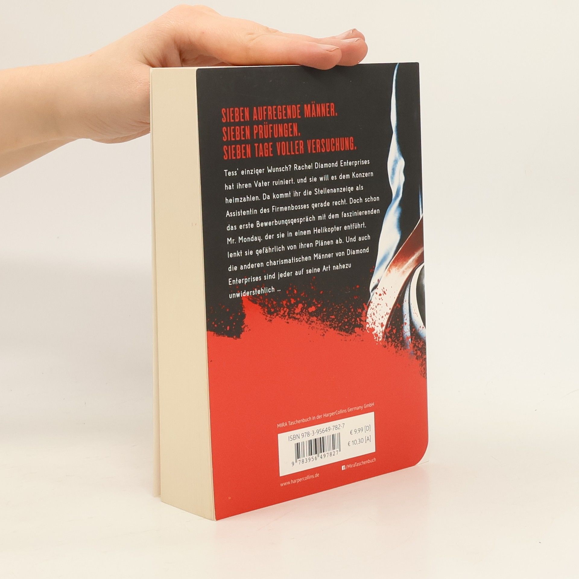 Tess‘ einziger Wunsch? Rache! Diamond Enterprises hat ihren Vater ruiniert und sie will es dem Konzern heimzahlen. Da kommt ihr die Stellenanzeige gerade recht: Als Assistentin des Firmenbosses hätte sie alle Informationen, um den Ruf ihres Vaters wiederherzustellen. Eine Woche lang soll sie nun täglich in einer anderen Abteilung ihr Können unter Beweis stellen - unter Anleitung des jeweiligen Chefs. Doch schon das erste Bewerbungsgespräch mit dem faszinierenden Mr. Monday, der sie in einem Helikopter entführt, lenkt sie gefährlich von ihren Plänen ab. Und auch die anderen charismatischen Männer von Diamond Enterprises sind jeder auf seine Art nahezu unwiderstehlich …