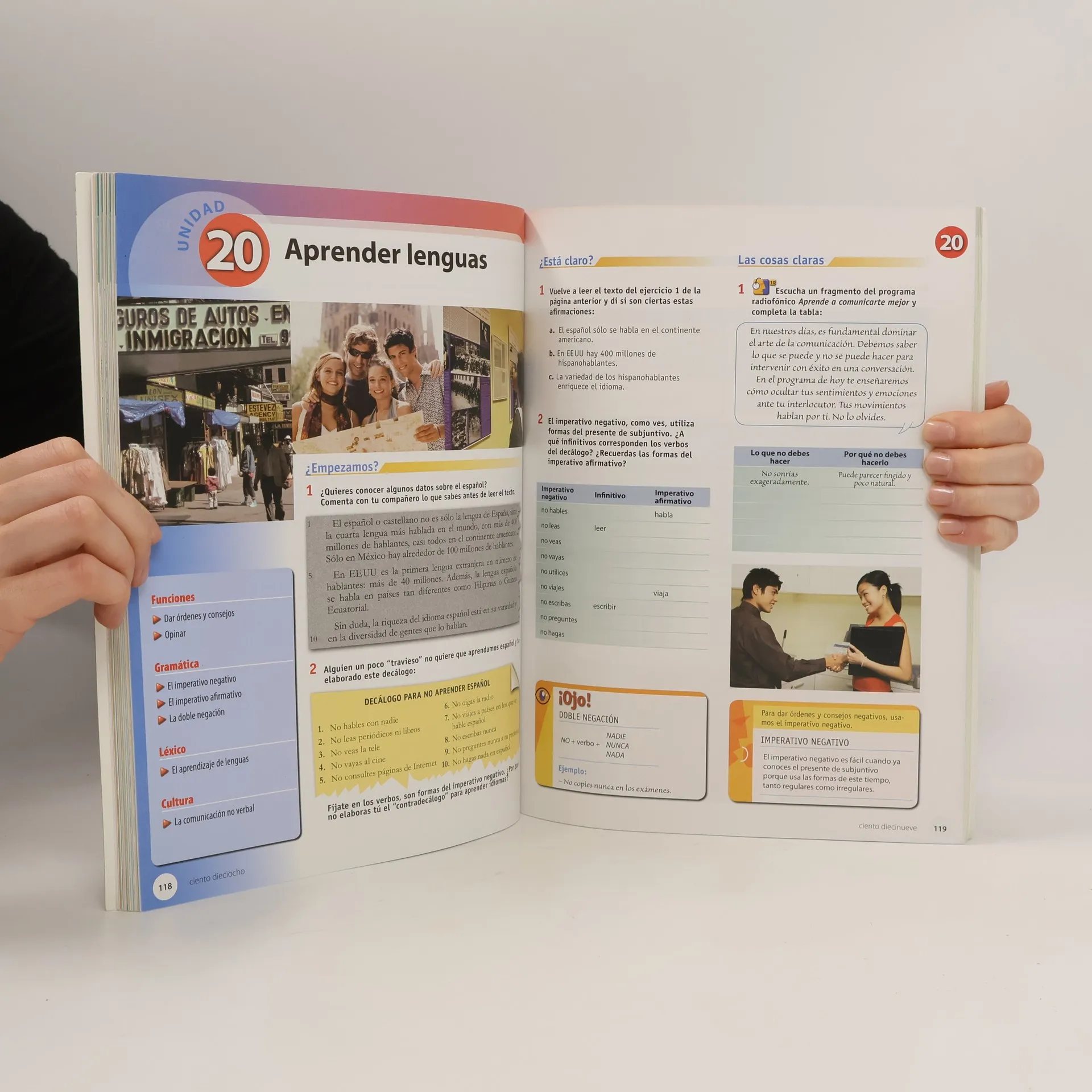 Manual destinado a estudiantes jóvenes y adultos que desean progresar rápidamente en el conocimiento de la lengua. Ofrece tareas y actividades que fomentan el aprendizaje cooperativo (actividades en pareja y en grupo). Cubre los niveles A1, A2 y B1 del MCER. Consta de 27 unidades y 7 repasos. Se incluyen ejercicios de autoevaluación y portfolio. Al final del libro se publica un esquema de tiempos verbales, así como las transcripciones de las actividades de comprensión auditiva.