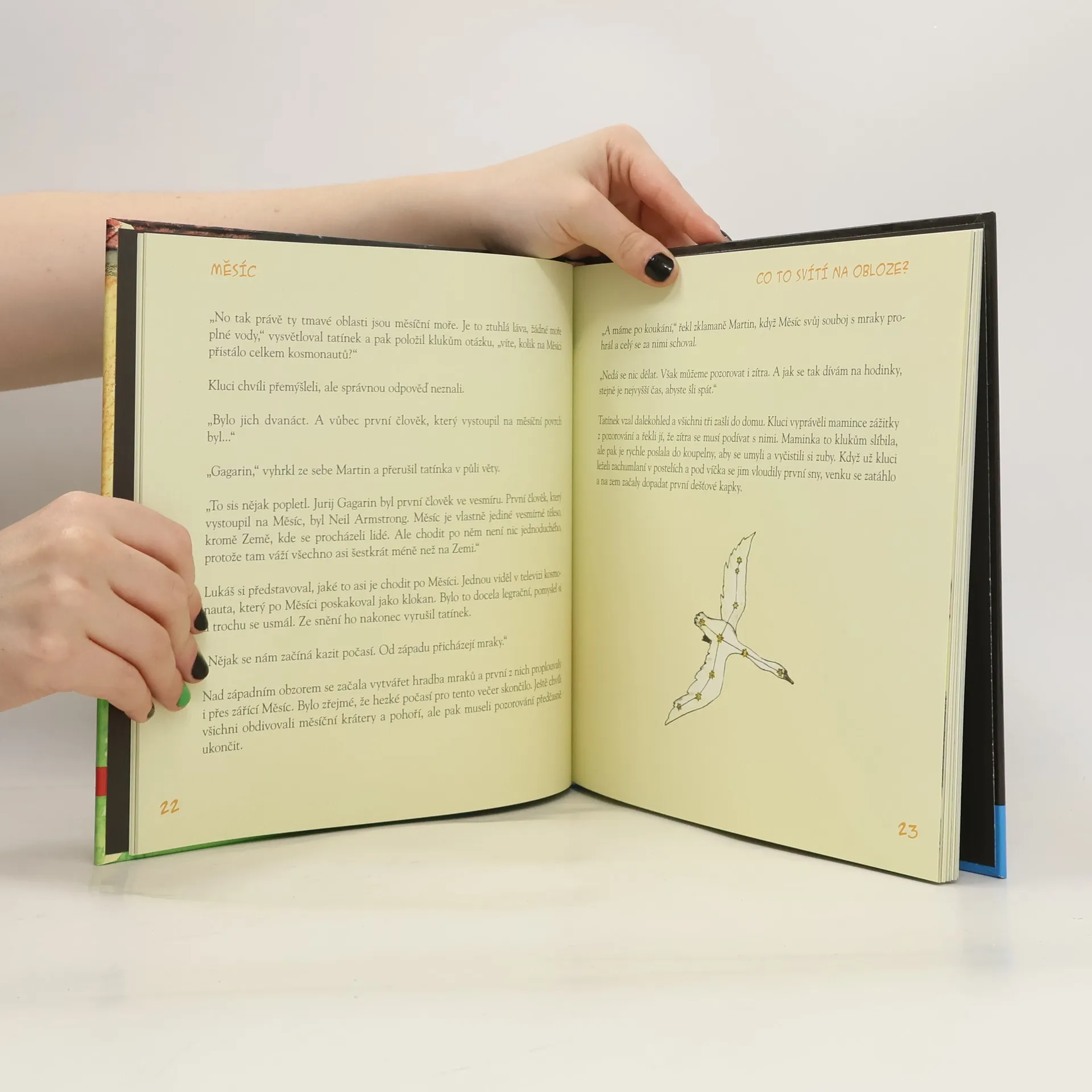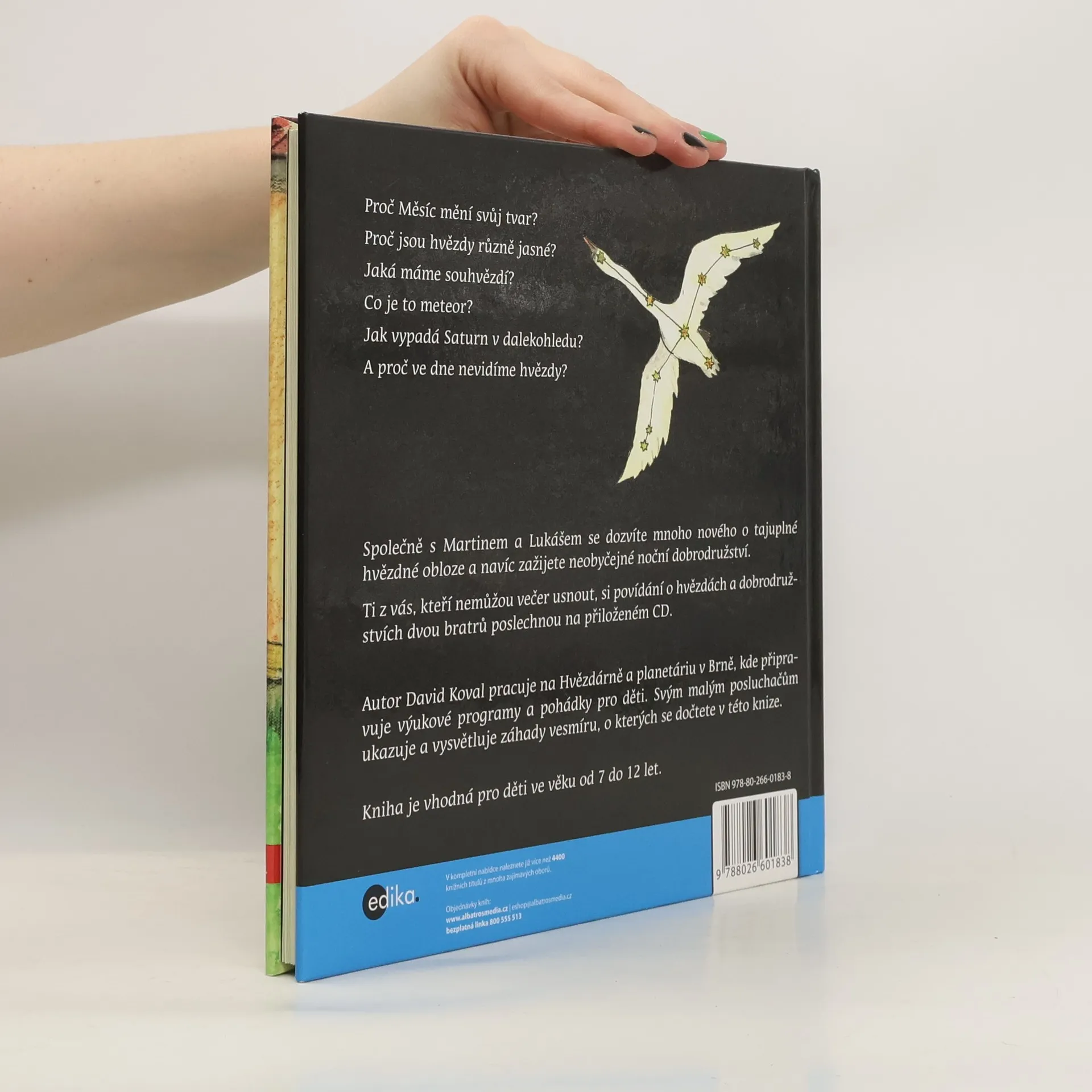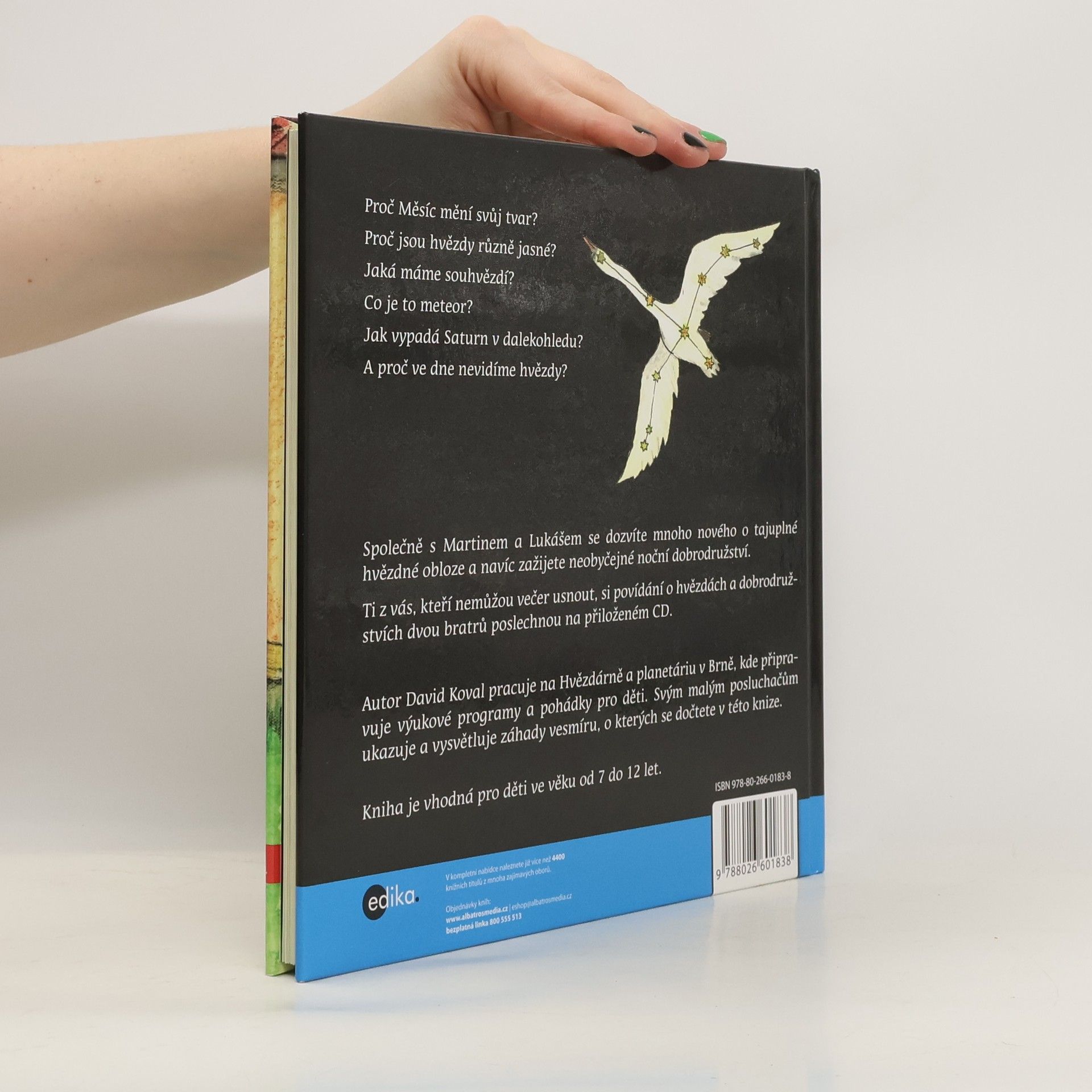 Autor knihy vytváří výukové programy na brněnské hvězdárně. Ve své knize se zábavnou formou snaží dětem (ale možná i jejich rodičům) objasnit ty nejobyčejnější otázky: Proč Měsíc mění svůj tvar? Proč jsou hvězdy různě jasné? Jaká máme souvhězdí? Co je to meteor? Jak vypadá Saturn v dalekohledu? Proč ve dne nevidíme hvězdy? Celá kniha je namluvena na přiložené CD, které uvítají děti, které nemohou usnout.