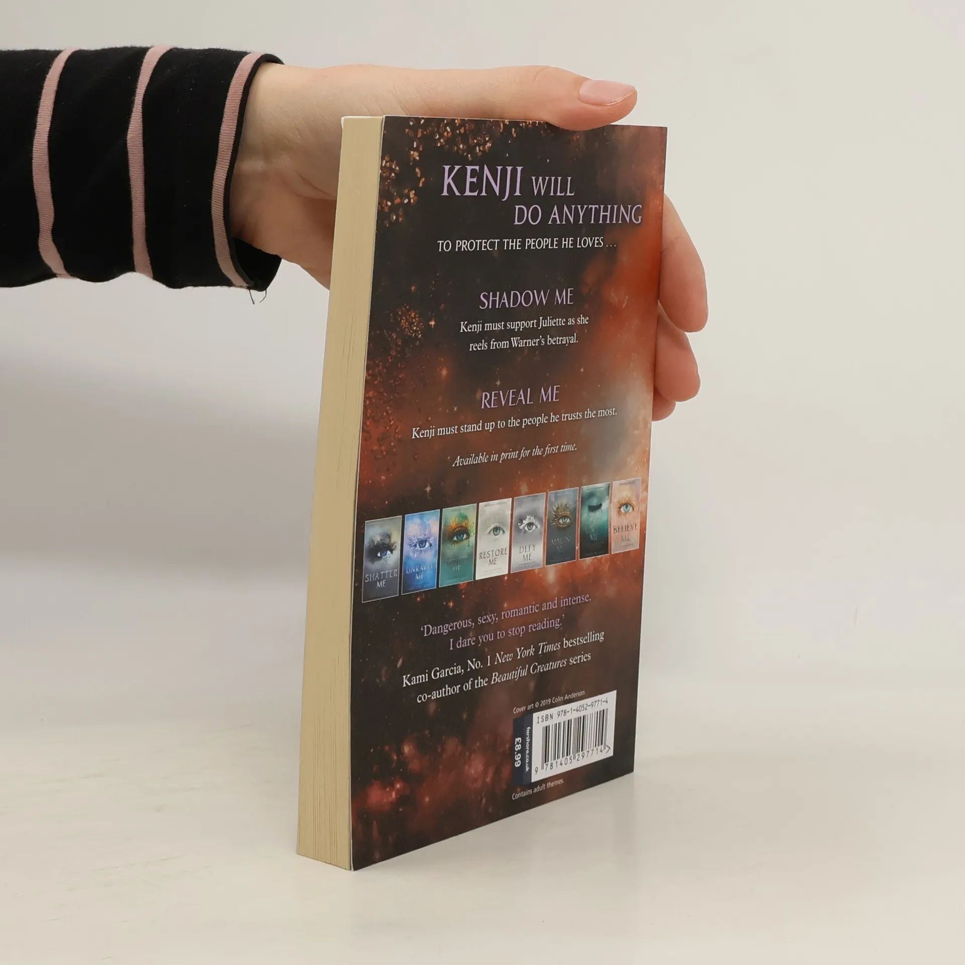 Shadow Me: Juliette is still reeling from Warner's betrayal, and Kenji is trying to balance his friendship with her with his responsibilities as a leader of the resistance against the Reestablishment. Things get even more interesting when an unexpected person from Omega Point's past surfaces. -- Reveal Me: Readers are brought back to the Shatter Me world one last time before the final novel installment in the series hits shelves in 2020