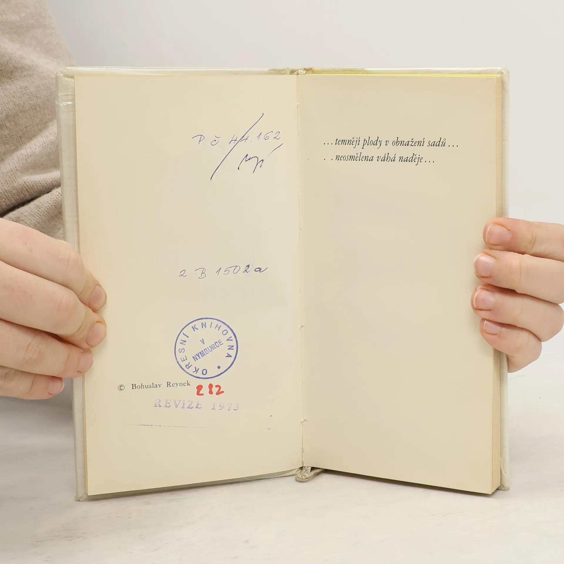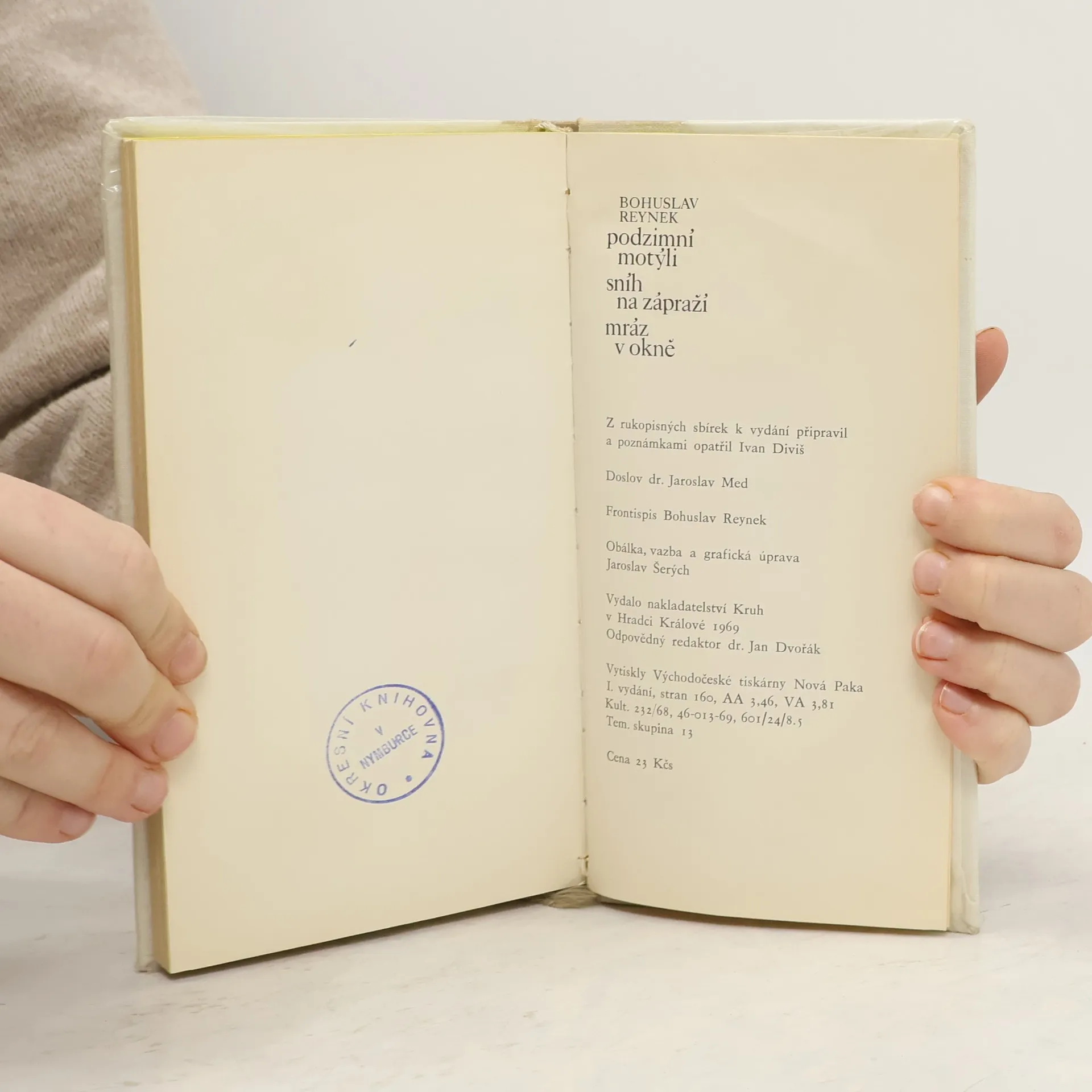 Bohuslav Reynek: Podzimní motýli / Sníh na zápraží / Mráz v okně. Tři sbírky básní (druhá a třetí jsou prvně publikovány) pocházejí z let 1945 -1955 a ztělesňují většinu z autorova zralého díla. Z rukopisných sbírek k vydání připravil a poznámkami opatřil Ivan Diviš. Doslov:Jaroslav Med.