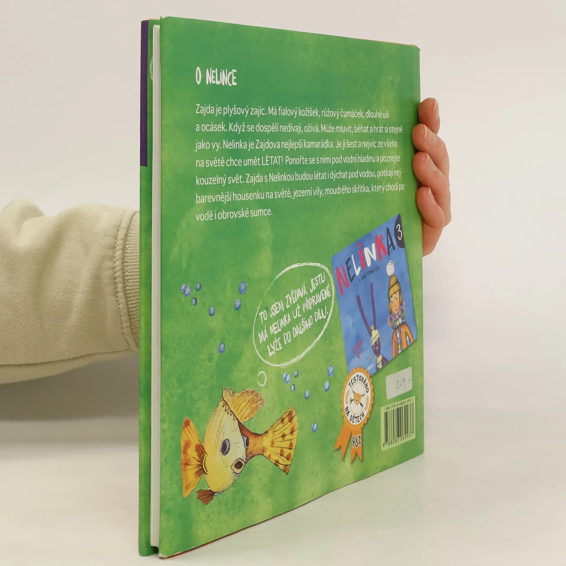Kniha pro děti a pro radost. Dobrodružství šestileté Nelinky a jejího plyšového zajíce Zajdy, který ožívá, když se dospělí nedívají, vás zavede do kouzelné země, kde je možné úplně vše. Hlavní hrdinové budou nejen létat, ale také dýchat pod vodou a poznávat jezerní svět. Potkají nejbarevnější housenku na světě, jezerní víly, moudrého skřítka, který chodí po vodě, i obrovské sumce. Jako dárek je vložena rybí záložka.