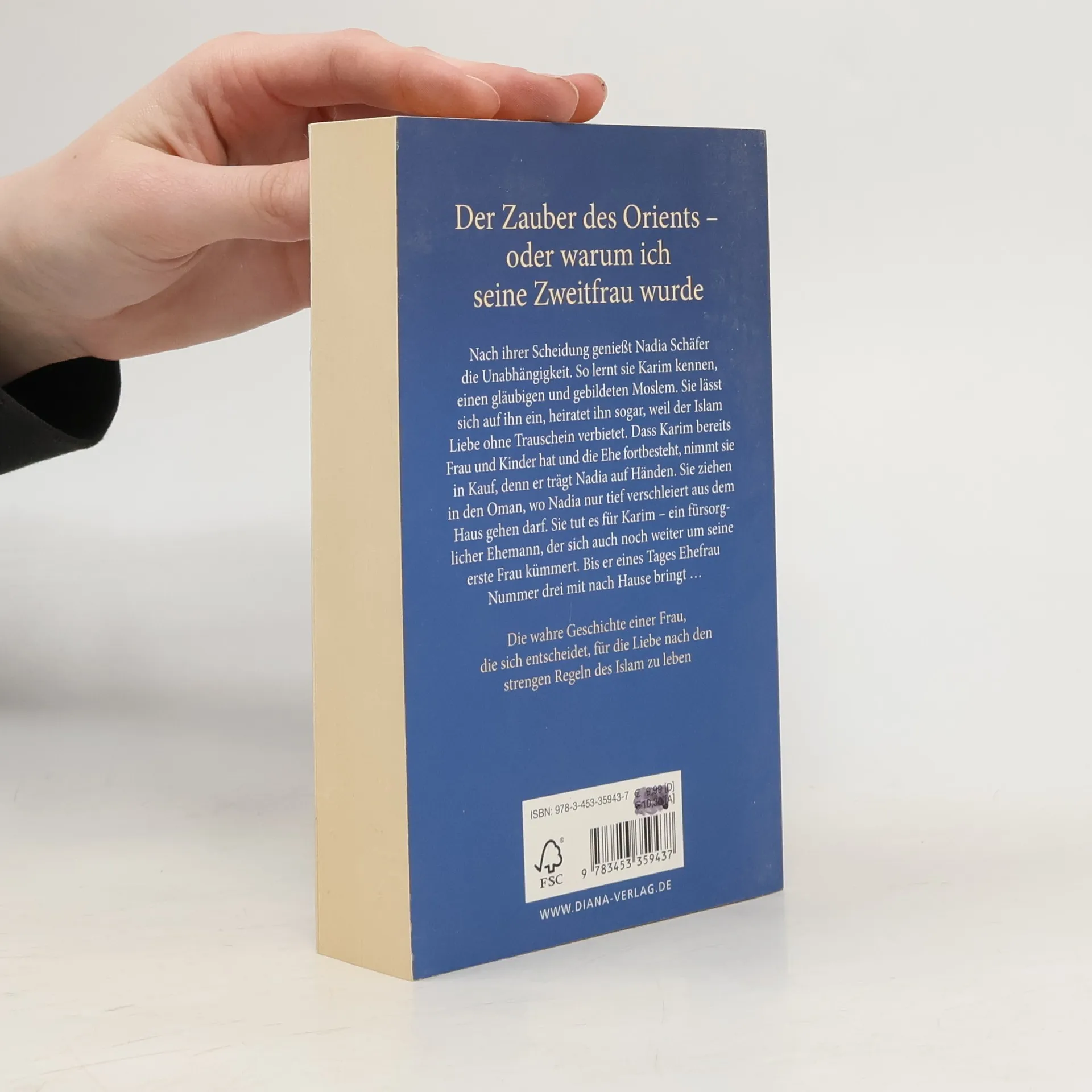 Nach ihrer Scheidung genießt Nadia Schäfer die Unabhängigkeit. So lernt sie Karim kennen, einen gläubigen und gebildeten Moslem. Sie lässt sich auf ihn ein, heiratet ihn sogar, weil der Islam Liebe ohne Trauschein verbietet. Dass Karim bereits Frau und Kinder hat und die Ehe fortbesteht, nimmt sie in Kauf, denn er trägt Nadia auf Händen. Sie ziehen in den Oman, wo Nadia nur tief verschleiert aus dem Haus gehen darf. Sie tut es für Karim – ein fürsorglicher Ehemann, der sich auch noch um seine erste Frau kümmert. Bis er eines Tages Ehefrau Nummer drei mit nach Hause bringt …