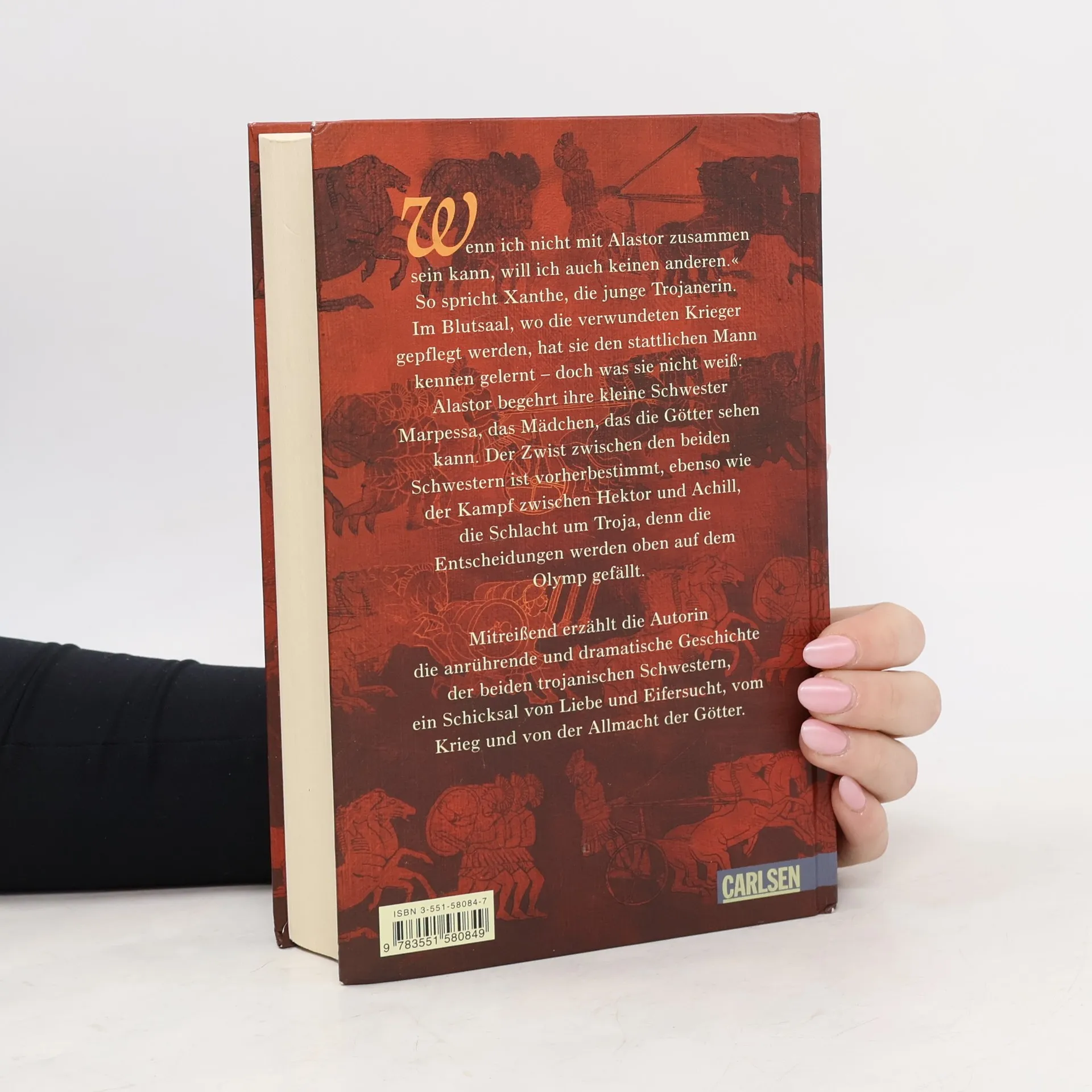 Wenn ich nicht mit Alastor zusammen sein kann, will ich auch keinen anderen. So spricht Xanthe, die junge Trojanerin. Im Blutsaal, wo die verwundeten Krieger vom Schlachtfeld gepflegt werden, hat sie den stattlichen schönen Mann kennen gelernt - doch was sie nicht weiß: Alastor begehrt ihre kleine Schwester Marpessa, das Mädchen, das die Götter sehen kann. Der Zwist zwischen den beiden Schwestern ist vorherbestimmt, ebenso wie der Kampf zwischen Hektor und Agamemnon, die Schlacht um Troja, denn die Entscheidung wird oben auf dem Olymp gefällt. Mitreißend erzählt die Autorin die anrührende und dramatische Geschichte der beiden trojanischen Schwestern, ein Schicksal von Liebe und Eifersucht, vom Krieg und der Allmacht der Götter.