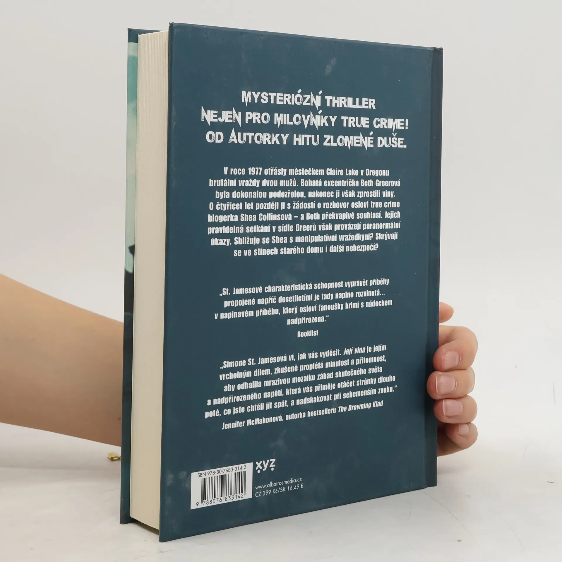 Mysteriózní thriller nejen pro milovníky true crime! Od autorky hitu Zlomené duše. V roce 1977 otřásly městečkem Claire Lake v Oregonu brutální vraždy dvou mužů. Bohatá excentrička Beth Greerová byla dokonalou podezřelou, nakonec ji však zprostili viny. O čtyřicet let později ji s žádostí o rozhovor osloví true crime blogerka Shea Collinsová – a Beth překvapivě souhlasí. Jejich pravidelná setkání v sídle Greerů však provázejí paranormální úkazy. Je možné, že se Shea sbližuje s manipulativní vražedkyní? A skrývají se ve stínech starého domu i další nebezpečí?