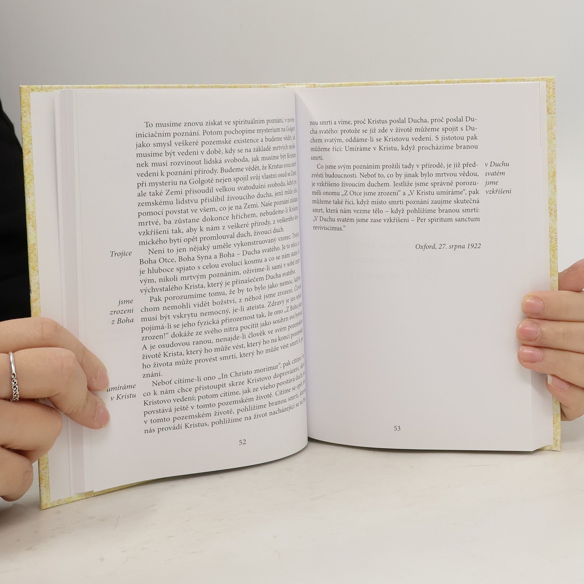 Rudolf Steiner v této knize objasňuje několik tajemství lidského života. V první části objasňuje princip Otce, Syna a Ducha svatého a vyzvedává význam mystéria Golgoty a Krista jako velkého léčitele, který nás chrání před úskalími současné doby. Vysvětluje rozdíl mezi živými a mrtvými myšlenkami a jak dochází k oživení myšlenek skrze Krista a Ducha svatého. Druhá část obsahuje pojednání o vztahu člověka k duchovnímu světu a v čem spočívá Kristova pomoc ve vztahu k intelektualismu. V třetí části se seznámíme se stupni iniciačního poznání a jak se dorozumívat se zemřelými. Poukazuje na prožívání kosmických sfér během spánku a vysvětluje podstatu snů v souvislosti s vnímáním naší karmy. V závěru najdete kritiku Spenglerova " Zániku Západu" a rady k překonávání nebezpečí spenglerismu.