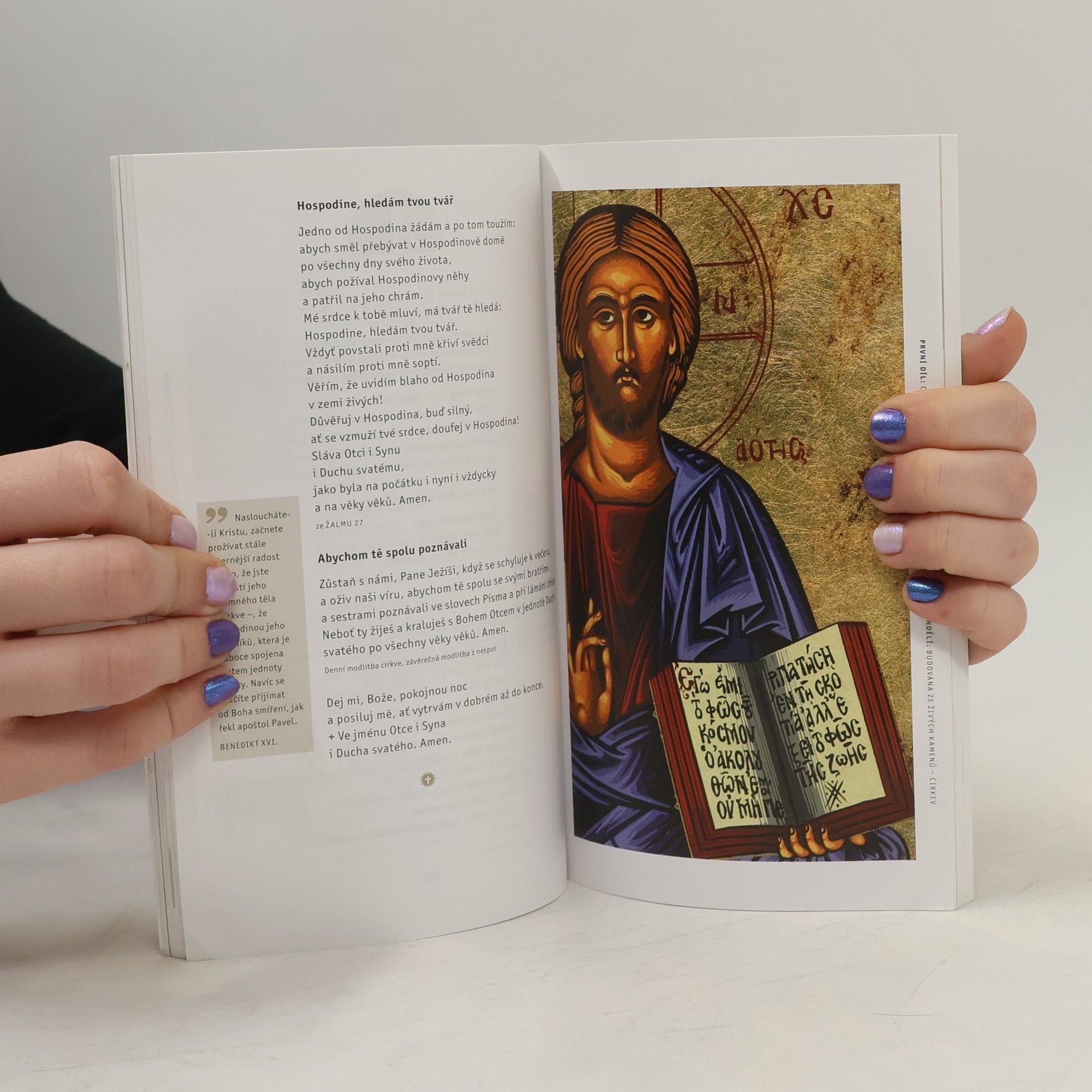 Staré i nové modlitby – z Bible, od velkých mistrů duchovního života i od našich současníků. První část knížky tvoří ranní a večerní modlitby, rozdělené do dvou týdnů. V druhé části jsou modlitby k různým příležitostem. Určeno jak pro ty, kdo se chtějí pravidelně modlit, tak pro ty, kdo se učí modlit vlastními slovy.