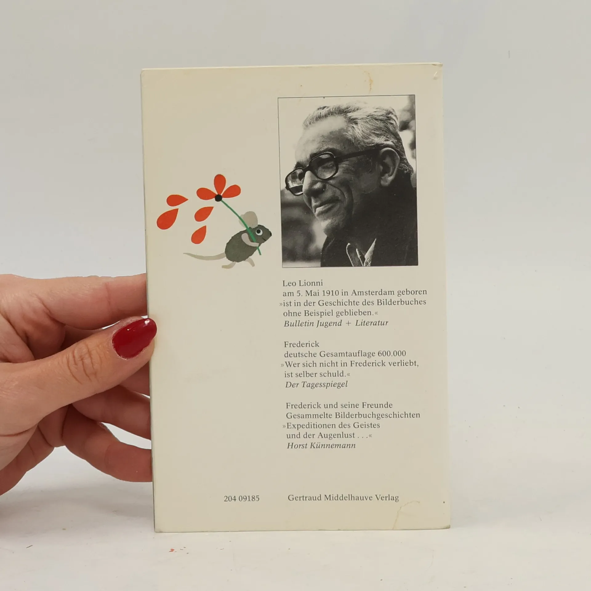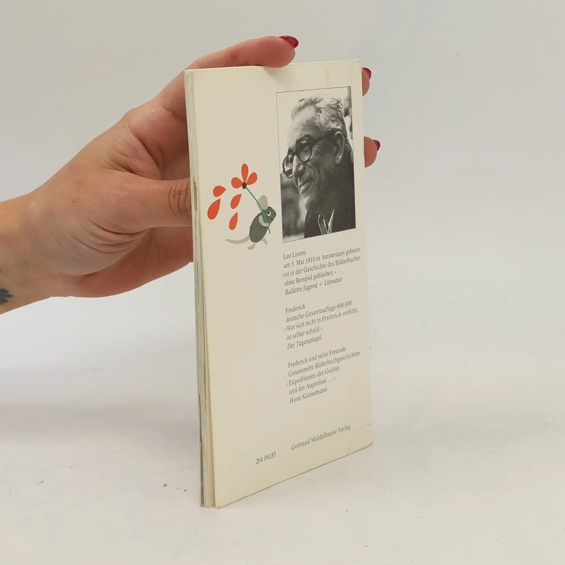 „Die Geschichte von der Maus, die nicht wie die anderen für den Winter Körner und Nüsse, sondern Sonnenstrahlen, Farben und Wörter sammelt, die Träume also und die Hoffnungen.“ Die Welt Der Winter naht. Alle Feldmäuse arbeiten Tag und Nacht, sammeln Körner und Nüsse, Weizen und Stroh. Alle bis auf Frederick. Er sammelt Sonnenstrahlen, Farben und Wörter, das sind seine Vorräte für die kalten, grauen und langen Wintertage. Schon als Kind liebte Leo Lionni die Natur, und das änderte sich im Laufe der Jahre auch nicht mehr. Seine Beobachtungen spiegeln sich in seinen Bilderbüchern wieder: „Das Staunen, das mich erfüllt, wenn ich im Gras liege und eine Riesenwelt im Kleinen beobachte, in der Grashalme Mammutbäume sind und ein Käfer ein angreifendes Nashorn, ist noch dasselbe wie damals, als ich ein kleiner Junge war.“ Leo Lionni Der moderne Bilderbuch-Klassiker „Frederick“ begeistert eine Kindergeneration nach der anderen! „Von all dem, was ich in meinem Leben getan habe, hat mich wenig so sehr und so tief befriedigt wie meine Kinderbücher.“ Leo Lionni