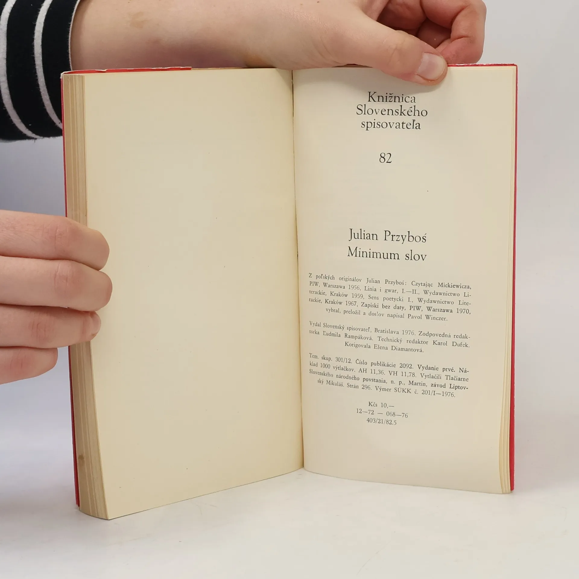 Minimum slov: eseje, úvahy, konfesie, Julian Przyboś, Pavol Winczer