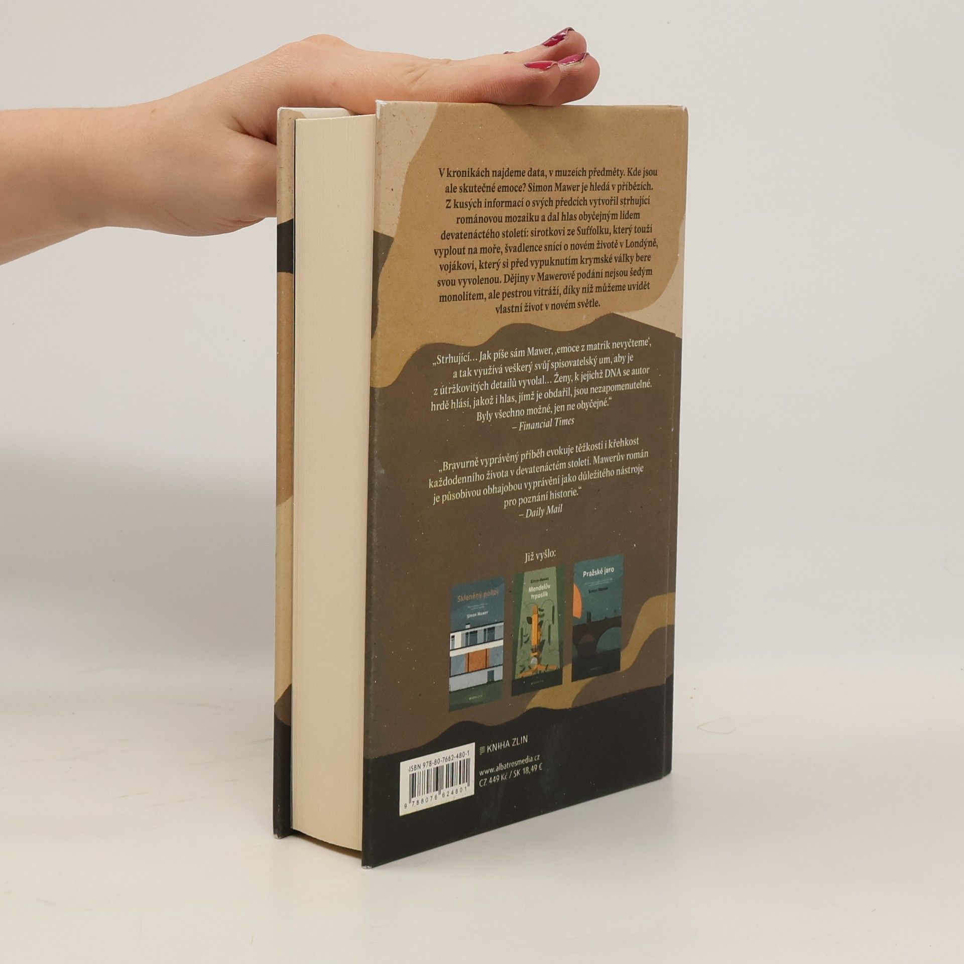 Jak nás formuje minulost? Podmanivá románová kronika od autora bestselleru Skleněný pokoj. V kronikách najdeme data, v muzeích předměty. Kde jsou ale skutečné emoce? Simon Mawer je hledá v příbězích. Z kusých informací o svých předcích vytvořil strhující románovou mozaiku a dal hlas obyčejným lidem 19. století: sirotkovi ze Suffolku, který touží vyplout na moře, švadlence snící o novém životě v Londýně, vojákovi, který si před vypuknutím krymské války bere svou vyvolenou. Dějiny v Mawerově podání nejsou šedým monolitem, ale pestrou vitráží, díky níž můžeme uvidět vlastní život v novém světle.