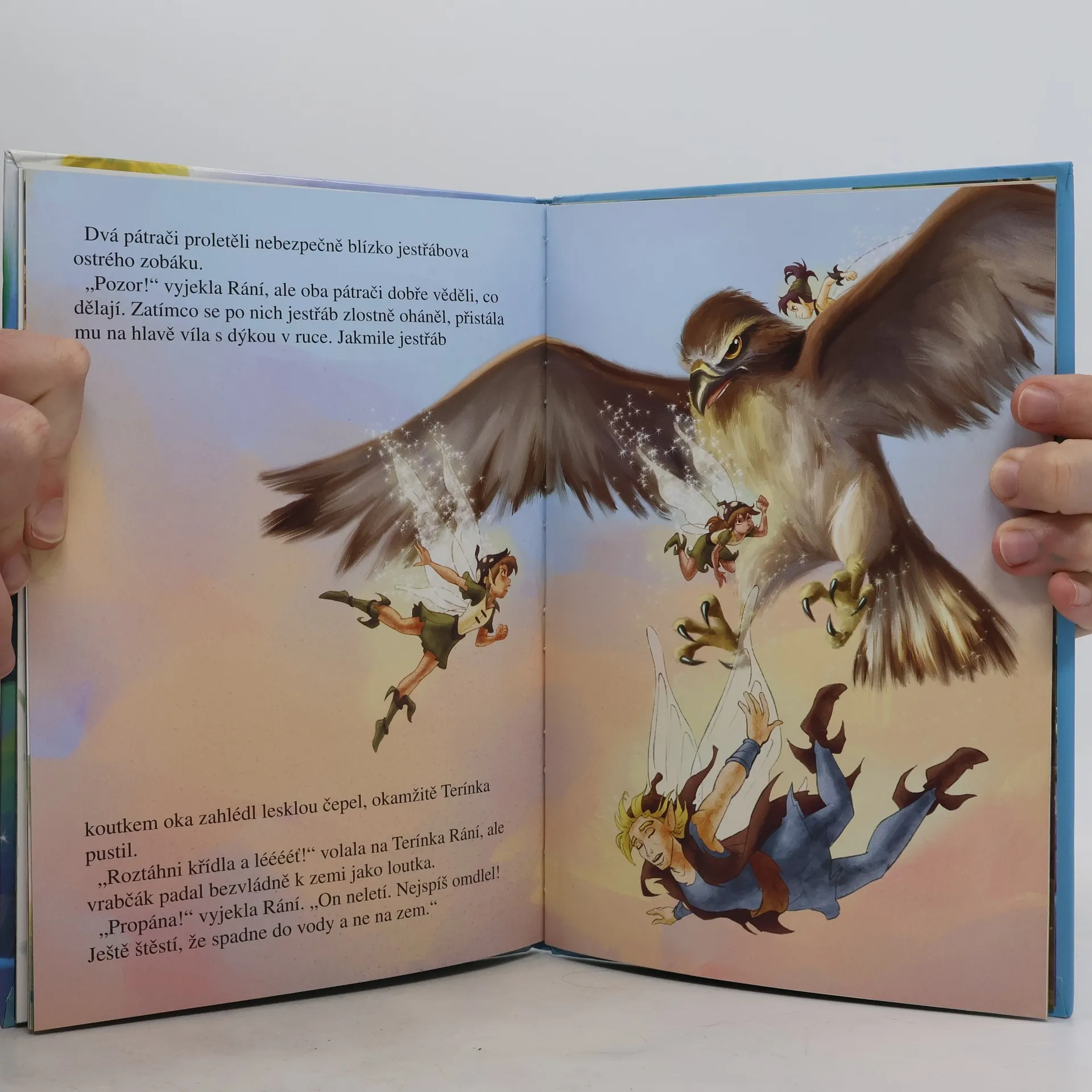 Kdesi daleko je země Nezemě a v ní žijí Petr Pan a jeho parta zvaná Ztracené kluci, kapitán Hák a jeho piráti a Indiáni, jejichž náčelník má dceru Tygří lilii. A také tam žije Matka holubice, víly a vílí kluci, kterým se říká vrabčáci. Jednou se stalo, že zlý hurikán odnesl Matce holubici kouzelné vejce. Tři víly dostaly za úkol přinést vejce zpět. Mezi nimi i Rání, víla s talentem pro vodu, která při tom obětovala svá křídla. Ale může být víla bez křídel vůbec užitečná? Může - dokáže totiž věci, které žádná jiná víla nedokáže. Co například? Otevřete si tuto knížku a pusťte se do čtení!