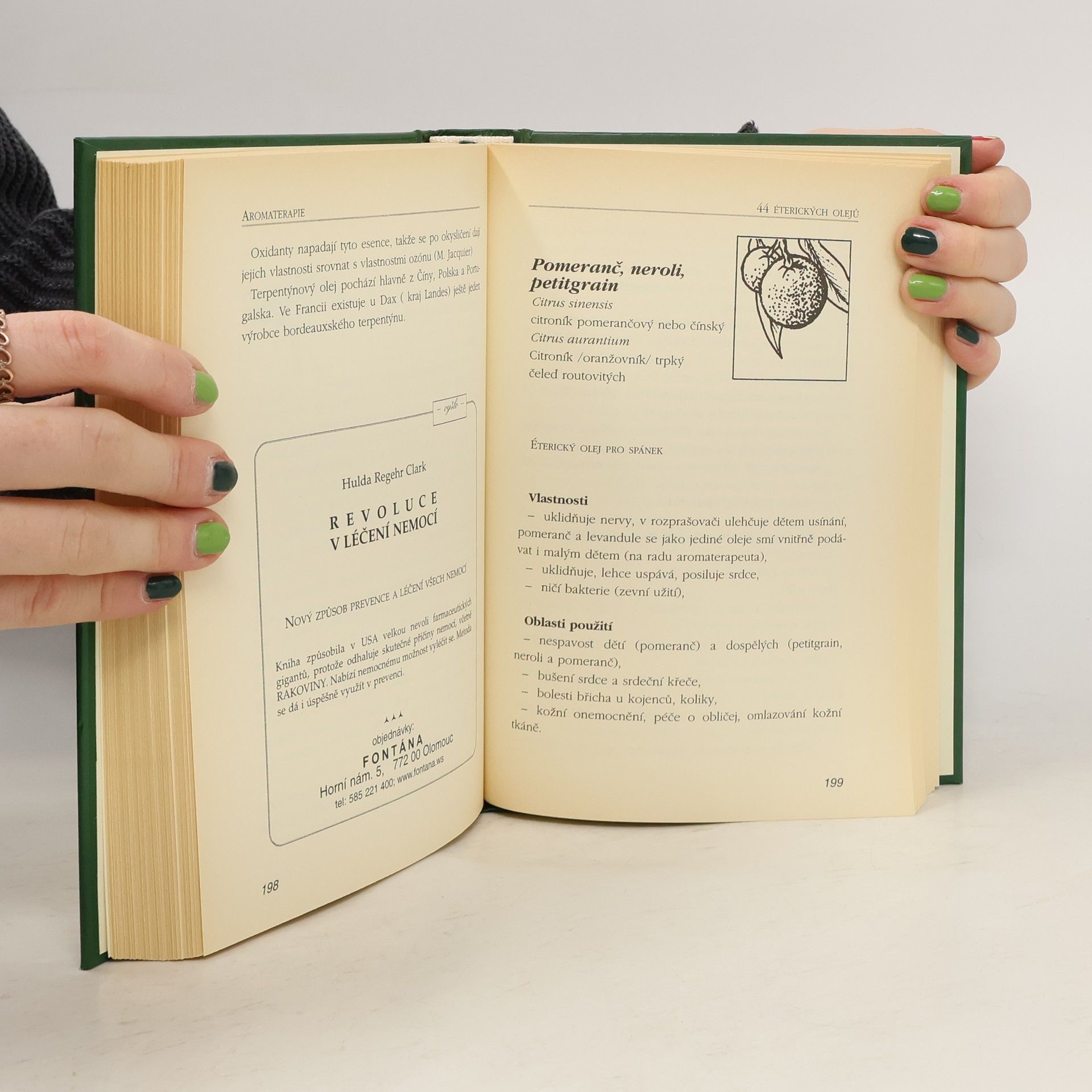 Knížka je věnována éterickým rostlinným olejům a jejich blahodárnému působení na lidský organizmus. Úvodní kapitoly nás seznámí s dějinami aromaterapie a s různými způsoby přípravy esenciálních olejů. Většina textu je však zaměřena velmi prakticky a podrobně rozebírá různé způsoby užívání éterických olejů a jejich účinky na konkrétní choroby. Můžeme si tak přečíst podrobnou charakteristiku 44 éterických bylinných olejů (a tím i 44 léčivých bylin) včetně způsobu užití, účinků, vlastností a použití v kuchyni. V Dodatku najdeme tabulky pro rychlou orientaci, pokud nás zajímá, který olej je vhodný na určitou nemoc. Knížku lze využít jako rychlého pomocníka a rádce, chceme-li léčit zdravotní potíže pomocí alternativní léčby, jmenovitě aromaterapií.
