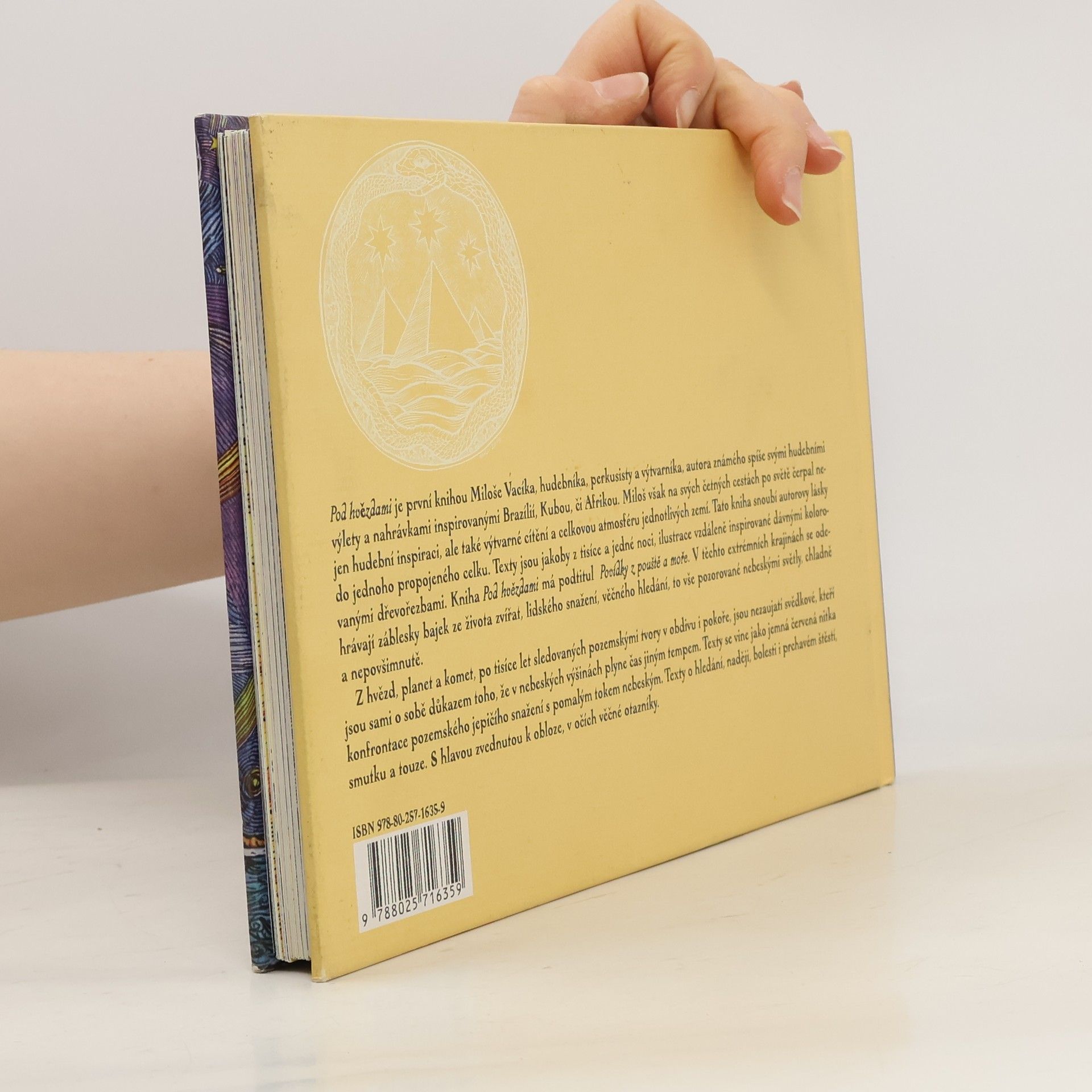 Pod hvězdami je první knihou Miloše Vacíka, hudebníka, perkusisty a výtvarníka, autora známého nahrávkami inspirovanými jeho cestami po Brazílií, Kubě či Africe. Miloš na svých cestách po světě čerpal také výtvarné cítění a celkovou atmosféru jednotlivých zemí. Tato kniha snoubí autorovy lásky do jednoho celku. Texty jsou jakoby z tisíce a jedné noci, ilustrace vzdáleně inspirované dávnými kolorovanými dřevořezbami. Kniha Pod hvězdami má podtitul Povídky z pouště a moře. V těchto extrémních krajinách se odehrávají záblesky bajek života zvířat, lidského snažení, věčného hledání, to vše pozorované nebeskými světly, chladně a nepovšimnutě.