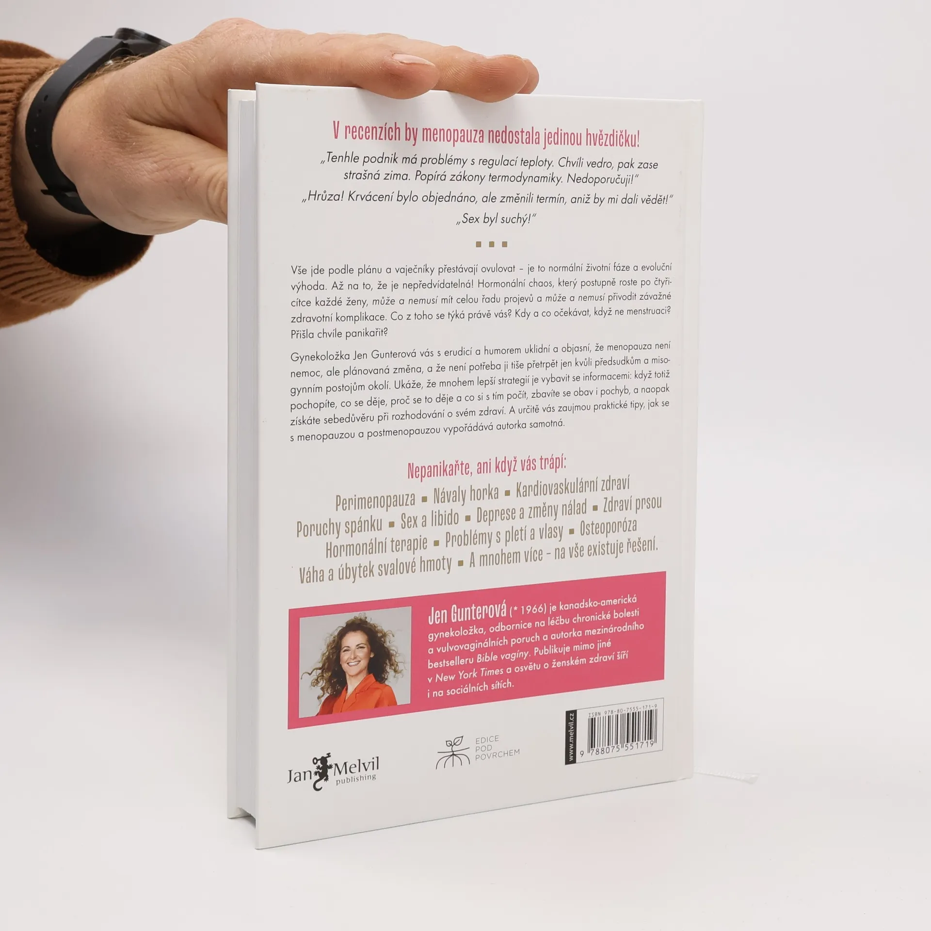 Vstupte do nové životní fáze s hrdostí, seznamte se s fakty o svém těle a získejte kontrolu nad zdravím Vše jde podle plánu a vaječníky přestávají ovulovat – je to normální životní fáze a evoluční výhoda. Až na to, že je nepředvídatelná! Hormonální chaos, který postupně roste po čtyřicítce každé ženy, může a nemusí mít celou řadu projevů a také může a nemusí přivodit závažné zdravotní komplikace. Co z toho se týká právě vás? Kdy a co očekávat, když ne menstruaci? Přišla chvíle panikařit?Gynekoložka Jen Gunterová vás s erudicí a humorem uklidní a objasní, že menopauza není nemoc, ale plánovaná změna, kterou nemusíte tiše přetrpět jen kvůli předsudkům, studu a misogynním postojům společnosti. Mnohem lepší strategií je vybavit se informacemi: když totiž pochopíte, co se děje, proč se to děje, a co si s tím počít, zbavíte se obav i pochyb, a naopak získáte sebedůvěru při rozhodování o svém zdraví. Kromě srozumitelného vysvětlení najdete v knize i praktické tipy, jak se s menopauzou a postmenopauzou vypořádává autorka samotná.