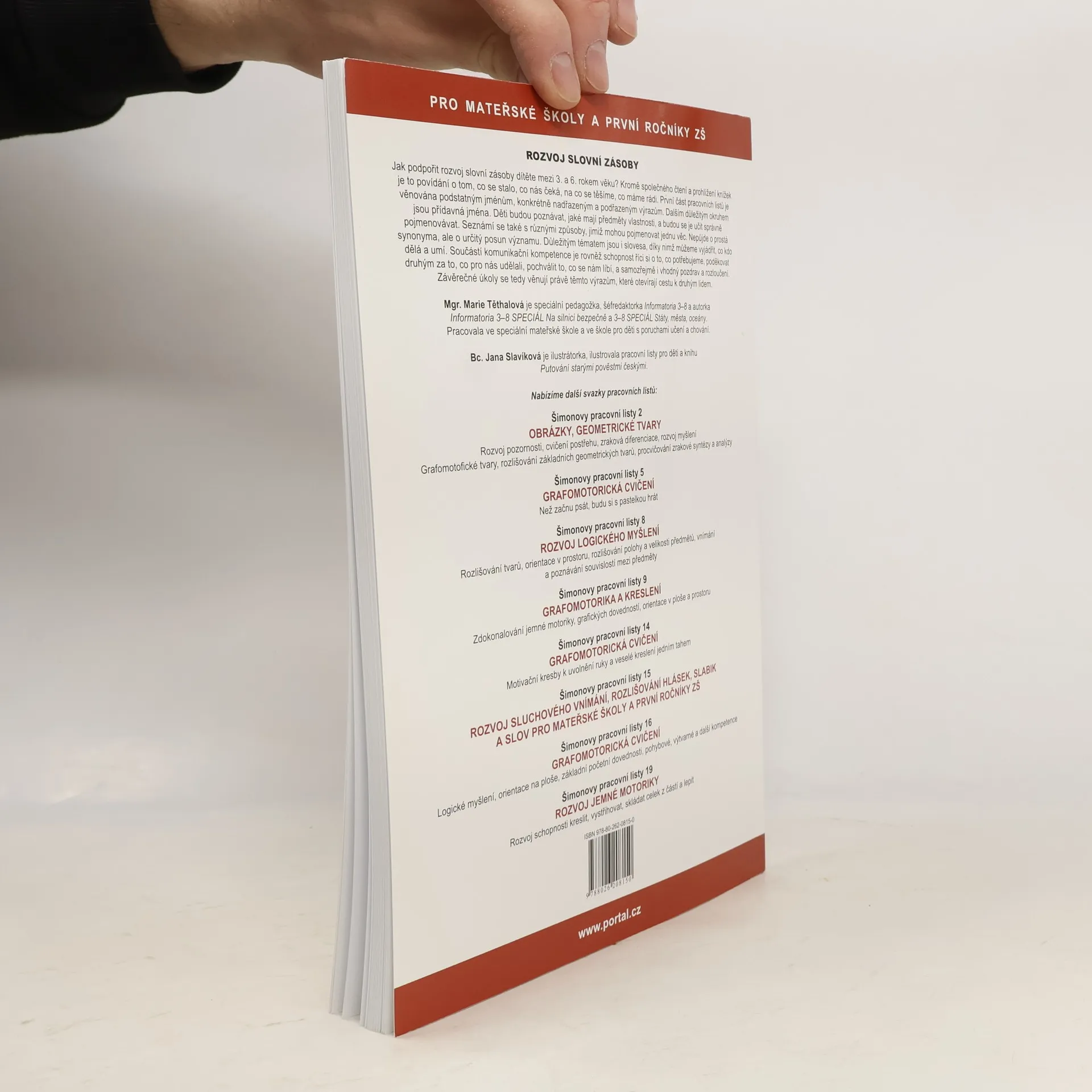 Jak podpořit rozvoj slovní zásoby dítěte mezi třetím a šestým rokem věku? Kromě společného čtení a prohlížení knížek je to rozhovor, povídání o tom, co se stalo, co nás čeká, na co se těšíme, co máme rádi. První část pracovních listů je věnovaná podstatným jménům, konkrétně nadřazeným a podřazeným výrazům. Dalším důležitým okruhem jsou přídavná jména. Děti budou poznávat, jaké mají nejrůznější předměty vlastnosti, a budou se je učit správně pojmenovávat. Děti se také seznámí s různými způsoby, jimiž mohou pojmenovat jednu věc. Nepůjde o prostá synonyma, ale o určitý posun významu. Důležitým tématem jsou také slovesa, díky nimž můžeme vyjádřit, kdo co dělá a umí. Součástí komunikační kompetence je též schopnost říci si o to, co potřebujeme, poděkovat druhým za to, co pro nás udělali, pochválit to, co se nám líbí, a též vhodný pozdrav a rozloučení. Závěrečné úkoly se tedy věnují právě těmto výrazům, které otevírají cestu k druhým lidem.