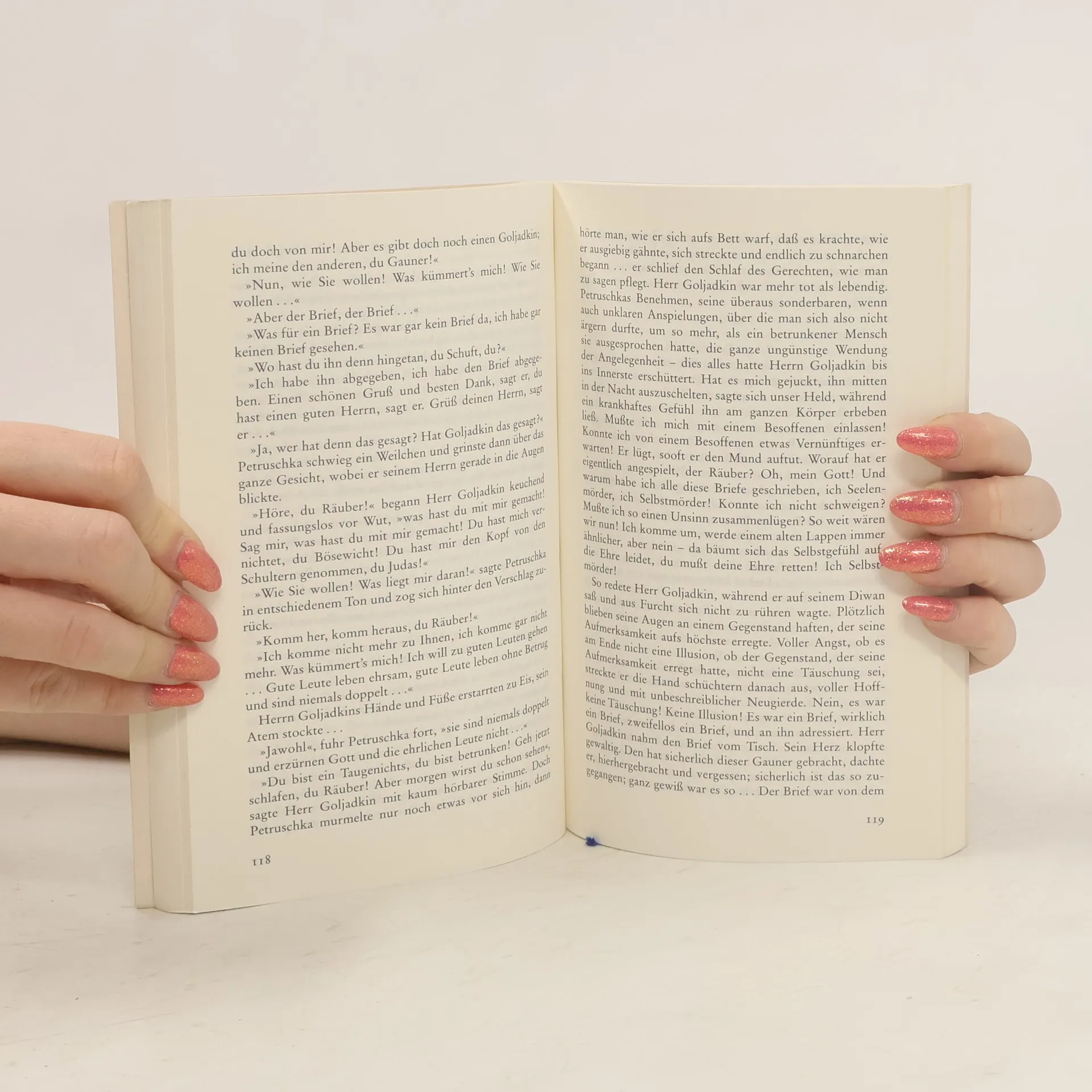 'Ich bin nicht ich, sondern jemand ganz anderer, der mir verblüffend ähnlich ist' - zu dieser verwirrenden Einsicht kommt der schüchterne Kanzleibeamte Goljadkin, als er in einer unheilvollen Nacht in Petersburg seinem Doppelgänger gegenübersteht. Nicht nur auf der Straße wird Goljadkin von seinem unheimlichen Double auf Schritt und Tritt verfolgt, auch am Arbeitsplatz, ja sogar in der eigenen Wohnung ist er vor dem ungebetenen Gast nicht mehr sicher, der ihn bald aus allen Lebensbezirken zu verdrängen sucht.