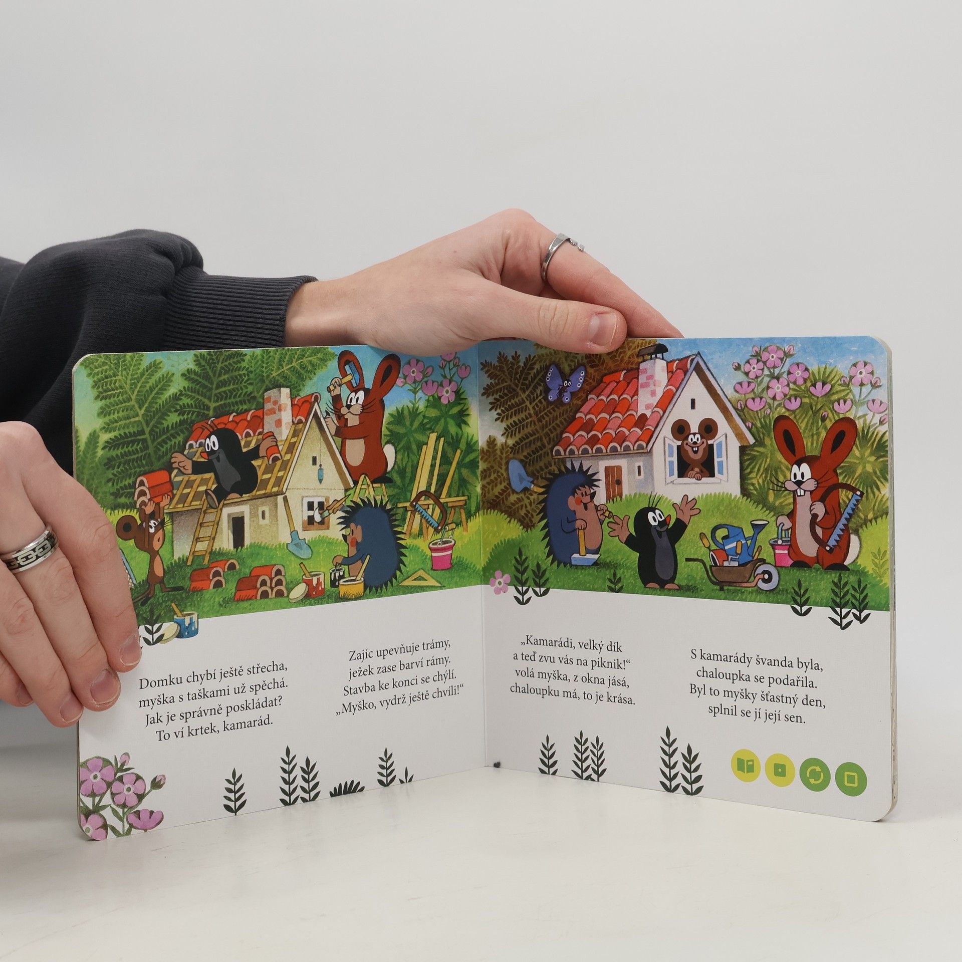 Nádherné ilustrace Zdeňka Milera zavedou děti za krtkem a jeho kamarády. Nejprve krtek pomůže se stavbou nového domku, který si vysnila myška, potom zachrání ztraceného zajíce a nakonec se vydá na výlet, kde ho překvapí medvědi. Krtek je zkrátka kamarád, se kterým rozhodně není nuda.
