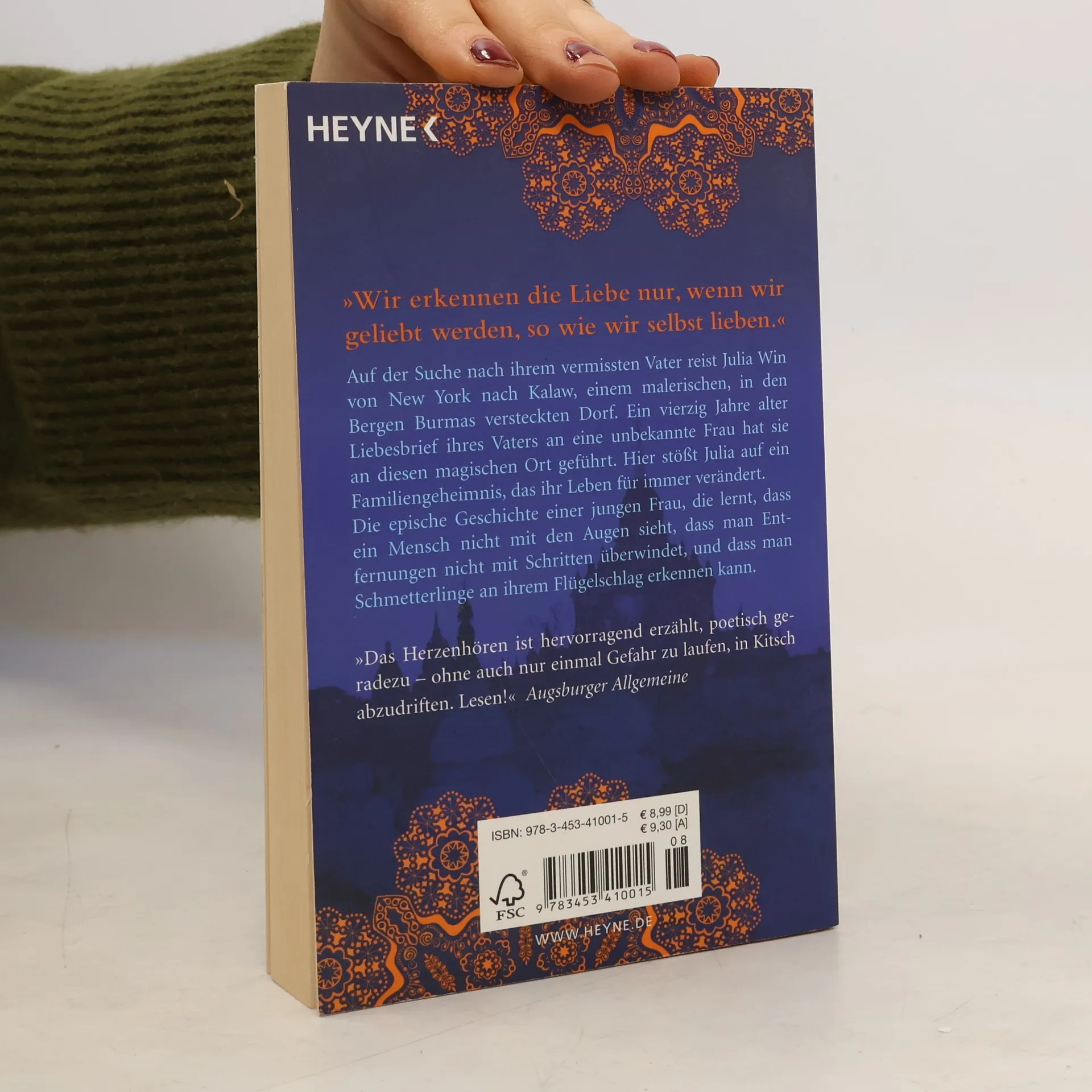 Eine der großen Liebesgeschichten unserer Zeit, die schon Hunderttausende Leserinnen begeisterte und stetig neue Leser findet: Die Suche nach ihrem vermissten Vater führt Julia Win von New York nach Kalaw, einem malerischen, in den Bergen Burmas versteckten Dorf. Ein vierzig Jahre alter Liebesbrief ihres Vaters an eine unbekannte Frau hat sie an diesen magischen Ort geführt. Hier findet sie nicht nur einen Bruder, von dem sie nichts wusste, sondern stößt auch auf ein Familiengeheimnis, das ihr Leben für immer verändert.