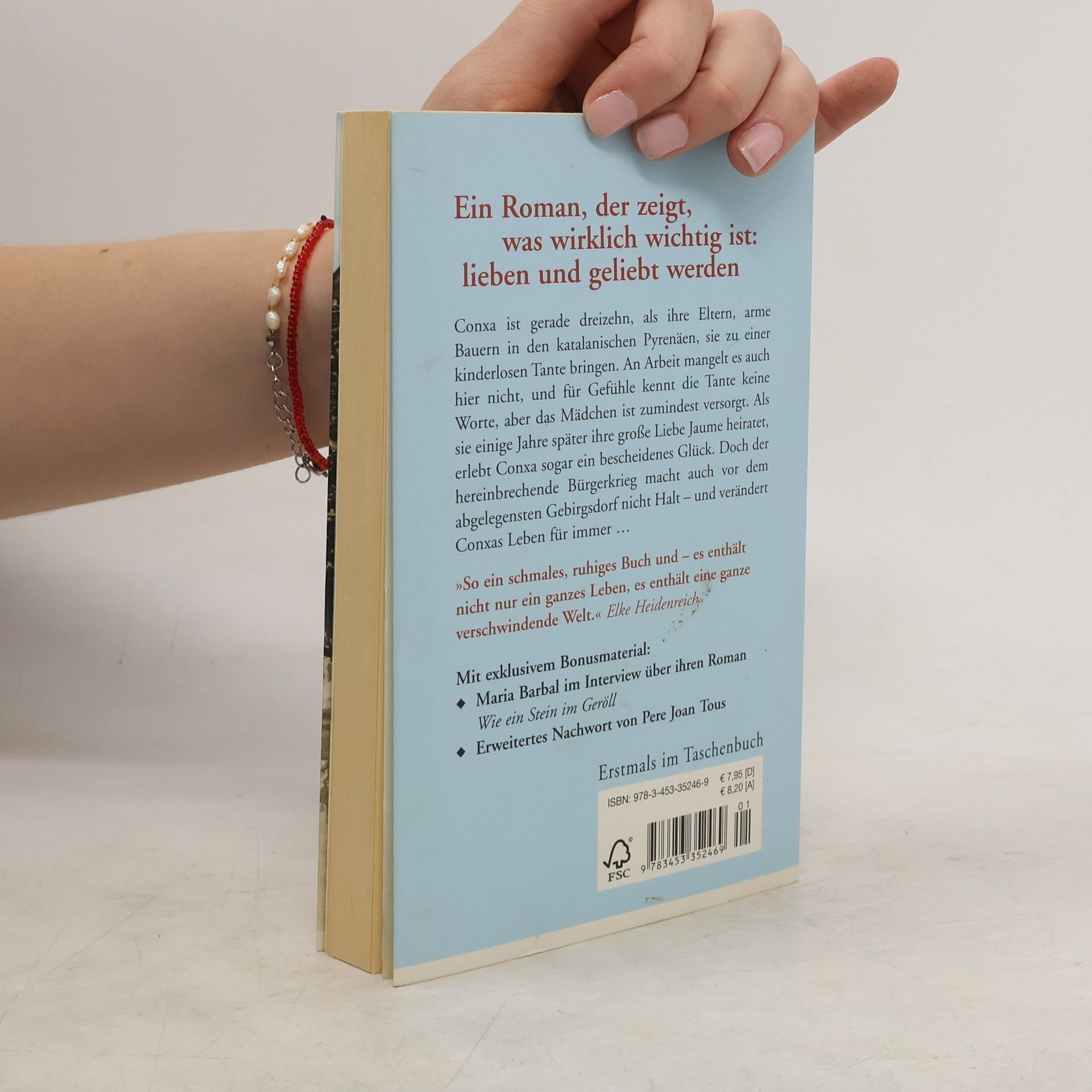 Ein Buch, das seine Leser lehrt, was wirklich wichtig ist: lieben und geliebt werden Conxa ist gerade dreizehn, als ihre Eltern, arme Bauern in den katalanischen Pyrenäen, sie zu einer kinderlosen Tante bringen. An Arbeit mangelt es auch hier nicht, und für Gefühle kennt die Tante keine Worte, aber das Mädchen ist zumindest versorgt. Als sie einige Jahre später ihre große Liebe Jaume heiratet, erlebt Conxa sogar ein bescheidenes Glück. Doch der Krieg hält brutal Einzug in die Abgeschiedenheit des Dorfes und reißt auch Conxa mit sich wie einen Stein im Geröll … Ein zärtlicher Blick in eine untergegangene Welt, in der Leben, Tod und die Liebe wie Urgewalten wirken.