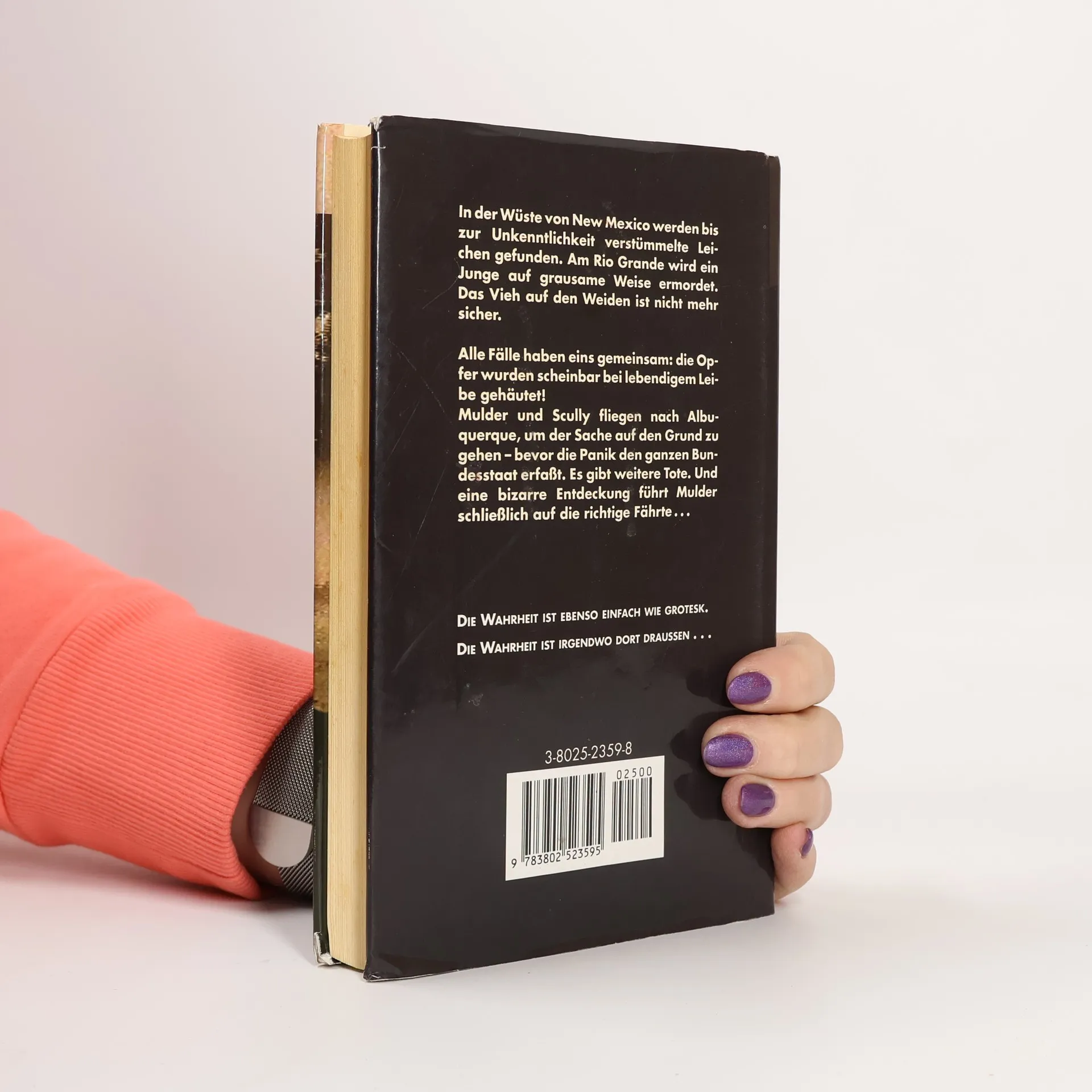 In der Wüste von New Mexico werden bis zur Unkenntlichkeit verstümmelte Leichen gefunden. Am Rio Grande wird ein Junge auf grausame Weise ermordet. Das Vieh auf den Weiden ist nicht mehr sicher. Alle Fälle haben eins gemeinsam: die Opfer wurden scheinbar bei lebendigem Leibe gehäutet! Mulder und Scully fliegen nach Albuquerque, um der Sache auf den Grund zu gehen - bevor die Panik den ganzen Bundesstaat erfaßt. Es gibt weitere Tote. Und eine bizarre Entdeckung führt Mulder schließlich auf die richtige Fährte ... (Verlagsangabe)
