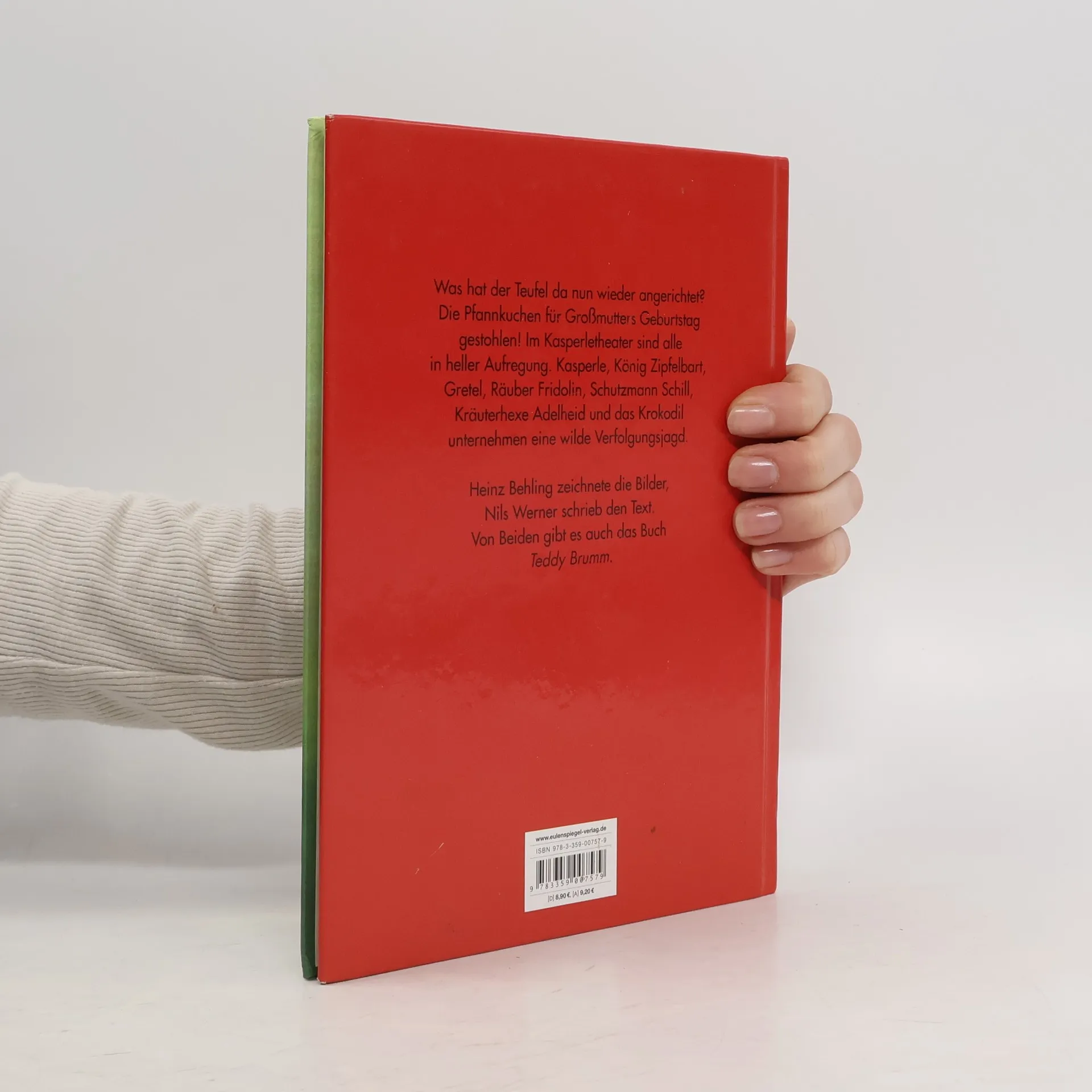 Da hat doch das Teufelchen die Pfannkuchen für Omas Geburtstagsfeier gestohlen! Bei einer wilden Verfolgungsjagd trickst er den Schutzmann Schill und die Kräuterhexe Adelheid, den Räuber Fridolin und Gretel, König Zipfelbart, Kasperle und das Krokodil aus. Als die ihn endlich fangen, hat er längst alle Pfannkuchen aufgegessen. Doch am Ende weiß Großmutter Rat. Bekannt auch als Zeichentrickfilm. Als in den fünfziger Jahren der Lyriker Nils Werner und der Karikaturist Heinz Behling zusammenarbeiten, entstanden mehrere Kinderbücher, die zu den schönsten Genres überhaupt zählen und inzwischen als Klassiker gelten.