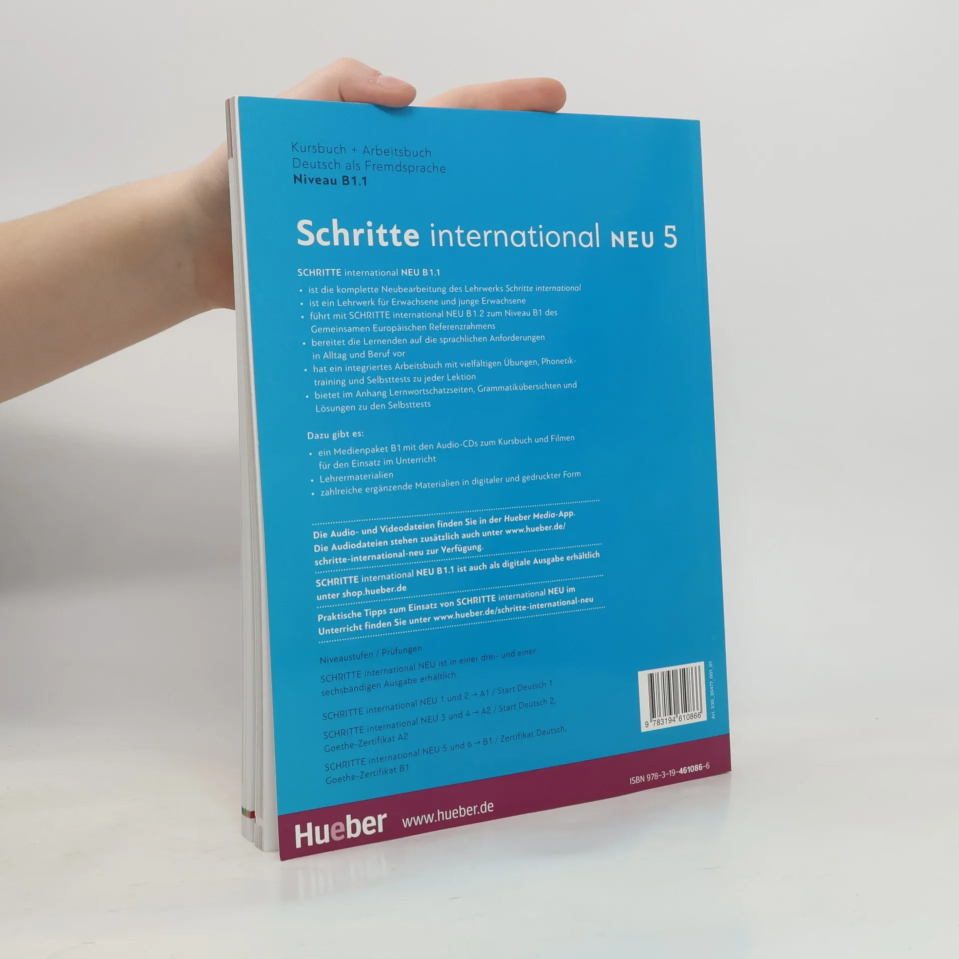 Der Kurs B1.1 bietet einen strukturierten Aufbau mit klaren Lernzielen und fördert die Lerntransparenz. Jede Lektion beginnt mit neuen Foto-Hörgeschichten und enthält interessante Texte sowie Landeskunde. Die induktive Grammatik unterstützt das Verständnis, während der Berufsbezug auf den Alltag vorbereitet. Ein Arbeitsbuch mit differenzierten Übungen, systematischem Schreibtraining und Phonetik ergänzt das Kursbuch. Zudem sind alle Medien über mobile Geräte abrufbar, und zusätzliche Materialien zu Beruf und Alltag sind integriert, um die Lernerautonomie zu stärken.