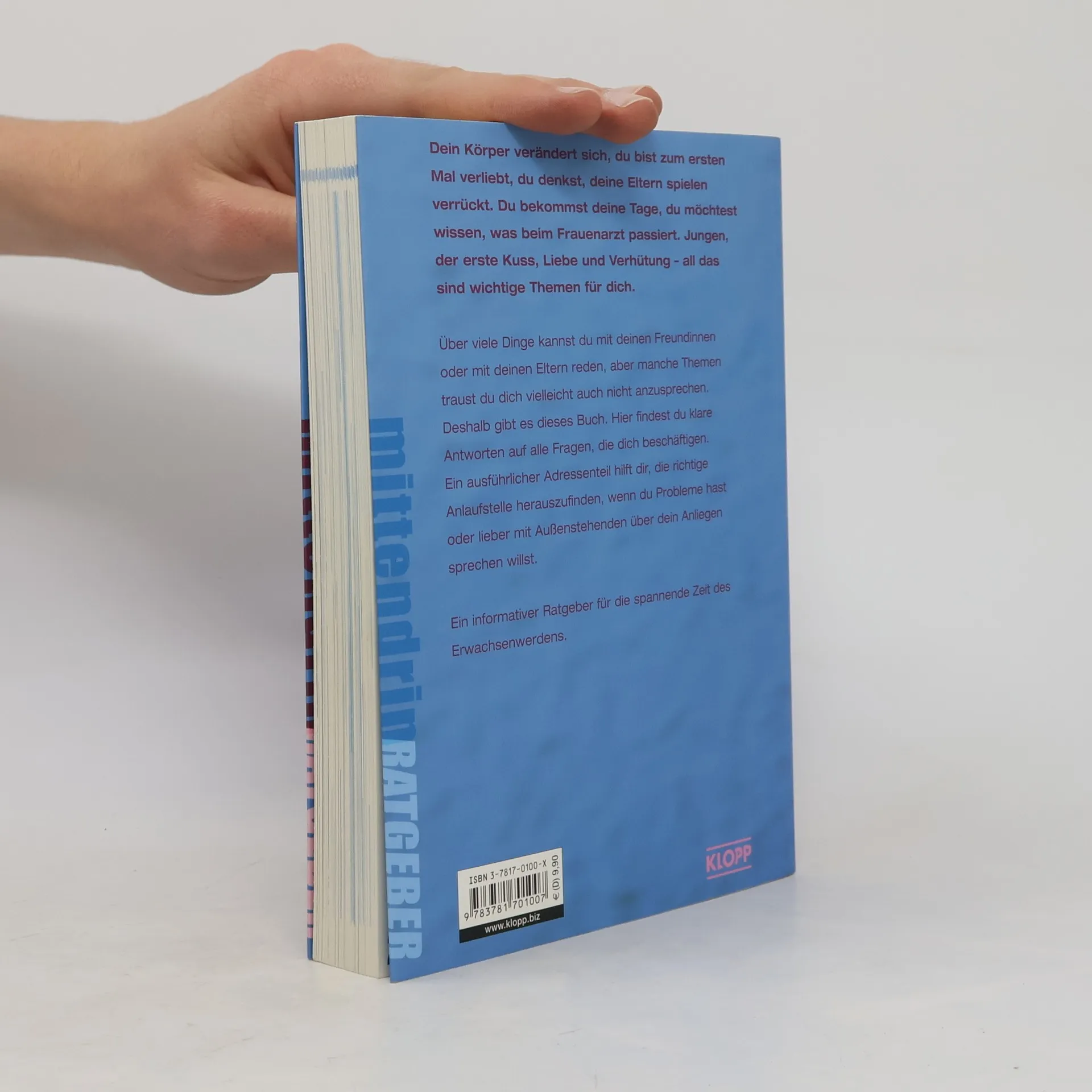 Was Mädchen schon immer fragen wollten … Zum ersten Mal verknallt, die Eltern gehen einem auf die Nerven, die erste Periode: Die Zeit des Erwachsenwerdens ist voller neuer Erfahrungen und nicht immer einfach! Jungen, der erste Kuss, Schwangerschaft und Verhütung sind Themen, die für Mädchen in diesem Alter plötzlich wichtig werden. Der Ratgeber beantwortet klar und übersichtlich alle Fragen, die Mädchen in diesen aufregenden Jahren haben. Ein ausführlicher Adressenteil informiert u. a. über Beratungsstellen. Infos und Tipps über Liebe, Sexualität, Probleme mit den Eltern u. v. m. für Mädchen in der Pubertät. Überarbeitete und ergänzte Neuausgabe mit ausführlichem Adressenteil.