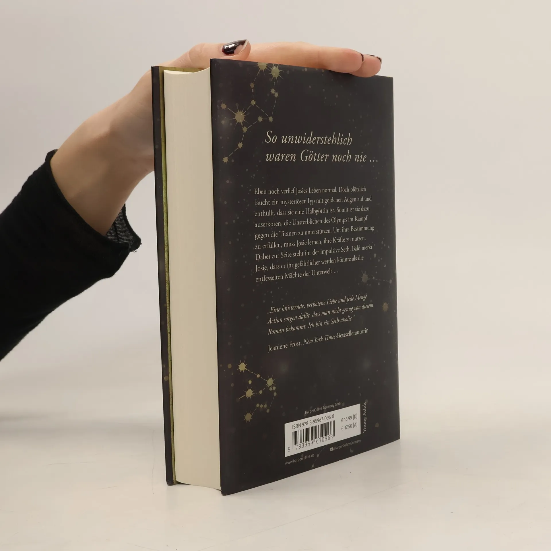 Eben noch verlief Josies Leben normal. Doch plötzlich taucht ein mysteriöser Typ mit goldenen Augen auf und behauptet, sie sei eine Halbgöttin. Somit ist sie dazu auserkoren, die Unsterblichen des Olymps im Kampf gegen die Titanen zu unterstützen. Um ihre Bestimmung zu erfüllen, muss Josie lernen, ihre Kräfte zu nutzen. Dabei zur Seite steht ihr der impulsive Seth. Bald merkt Josie, dass er ihr gefährlicher werden könnte als die entfesselten Mächte der Unterwelt … „Spannend von der ersten bis zur letzten Seite. Ein sehr vielversprechender Start der neuen Fantasyserie.“ Publishers Weekly "Eine knisternde, verbotene Liebesgeschichte und jede Menge Action sorgen dafür, dass man nicht genug von diesem Roman bekommt. Ich bin ein Seth-aholic.” New York Times-Bestsellerautorin Jeaniene Frost
