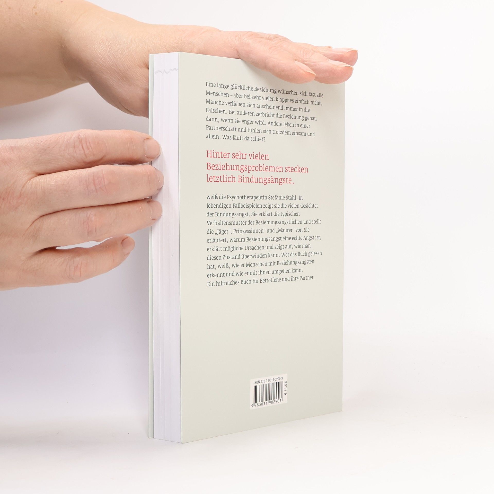 Hilfe bei Bindungsangst Stefanie Stahl – „Jein! Bindungsängste erkennen und bewältigen“ Eine lange glückliche Beziehung wünschen sich fast alle Menschen – aber bei vielen klappt es einfach nicht. Manche verlieben sich anscheinend immer in die Falschen. Bei anderen zerbricht die Beziehung genau dann, wenn sie enger wird. Wieder andere leben in einer Partnerschaft und fühlen sich trotzdem einsam und allein. Was läuft da schief? „Hinter vielen Beziehungsproblemen stecken letztlich Bindungsängste“, weiß die Psychotherapeutin Stefanie Stahl. In lebendigen Fallbeispielen zeigt sie die vielen Gesichter der Bindungsangst und erklärt die typischen Verhaltensmuster bei Bindungsphobikern. Sie stellt die unterschiedlichen Typen „Jäger“, „Prinzessinnen“ und „Maurer“ vor und erläutert, warum Bindungssangst eine echte, ernstzunehmende Angst ist. Sie erklärt mögliche Ursachen und zeigt auf, wie man durch Selbsterkenntnis und Veränderung einen Ausweg finden kann. Wer das Buch gelesen hat weiß, wie er Menschen mit Beziehungsängsten erkennt und wie er mit ihnen umgehen sollte. Ein hilfreiches Buch für Betroffene und ihre Partner.