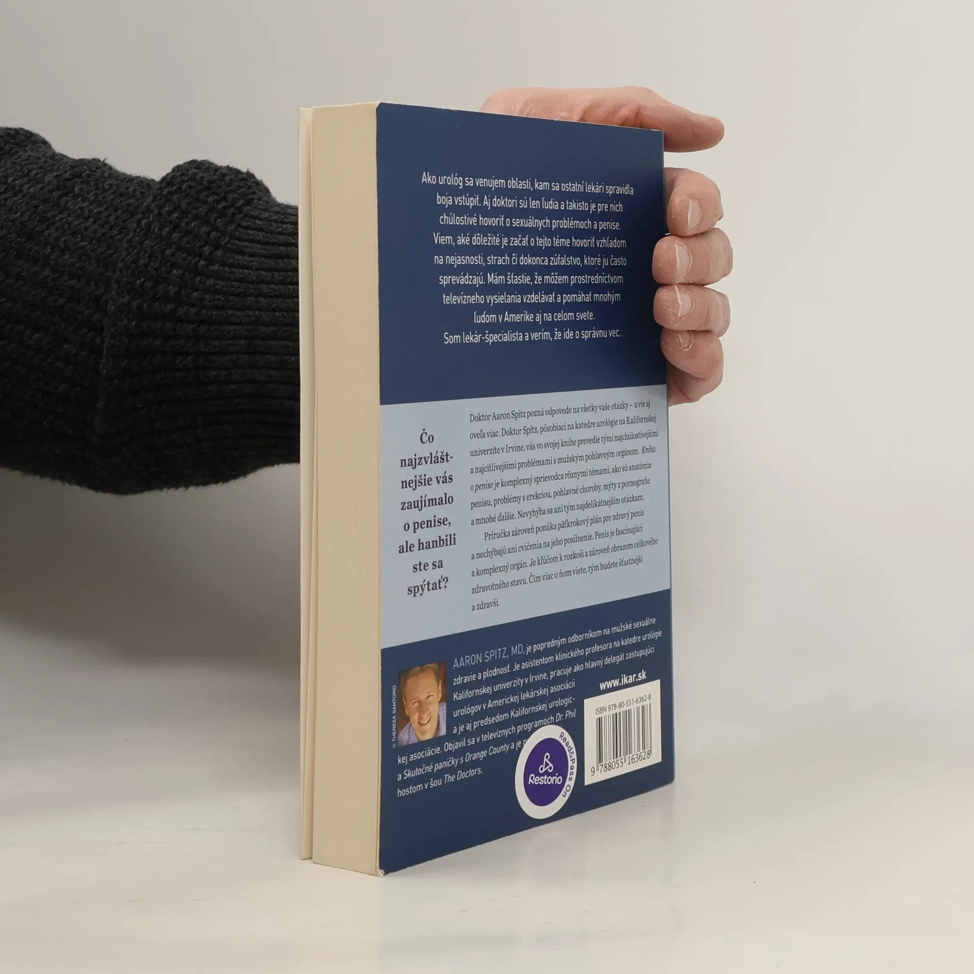 Päťkrokový plán pre zdravý penis. Ako urológ sa venujem oblasti, kam sa ostatní lekári spravidla boja vstúpiť. Aj doktori sú len ľudia a takisto je pre nich chúlostivé hovoriť o sexuálnych problémoch a penise. Viem, aké dôležité je začať o tejto téme hovoriť vzhľadom na nejasnosti, strach či dokonca zúfalstvo, ktoré ju často sprevádzajú. Mám šťastie, že môžem prostredníctvom televízneho vysielania vzdelávať a pomáhať mnohým ľuďom v Amerike aj na celom svete. Som lekár-špecialista a verím, že ide o správnu vec. Čo najzvláštnejšie vás zaujímalo o penise, ale hanbili ste sa spýtať? Doktor Aaron Spitz pozná odpovede na všetky vaše otázky a vie aj oveľa viac. Doktor Spitz, pôsobiaci na katedre urológie na Kalifornskej univerzite v Irvine, vás vo svoje knihe prevedie tými najchúlostivejšími a najcitlivejšími problémami s mužským pohlavným orgánom. Kniha o penise je komplexný sprievodca rôznymi témami, ako sú anatómia penisu, problémy s erekciou, pohlavné choroby, mýty z pornografie a mnohé ďalšie. Nevyhýba sa ani sa tým najdelikátnejším otázkam. Príručka zároveň ponúka päťkrokový plán pre zdravý penis a nechýbajú ani cvičenia na jeho posilnenie. Penis je fascinujúci a komplexný orgán. Je kľúčom k rozkoši a zároveň oknom celkového zdravotného stavu. Čím viac o ňom viete, tým budete šťastnejší a zdravší.