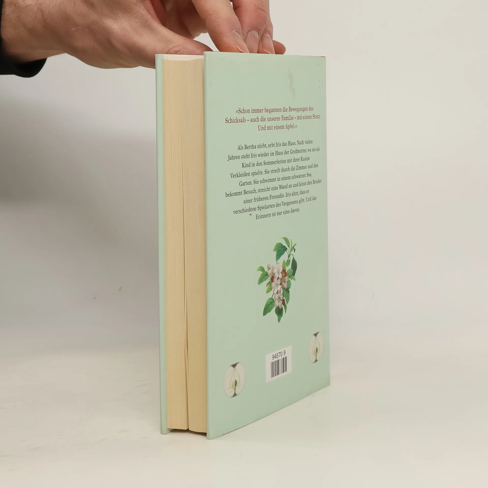 Als Bertha stirbt, erbt Iris das Haus. Nach vielen Jahren steht Iris wieder im alten Haus der Großmutter, wo sie als Kind in den Sommerferien mit ihrer Kusine Verkleiden spielte. Sie streift durch die Zimmer und den Garten, eine aus der Zeit gefallene Welt, in der rote Johannisbeeren über Nacht weiß und als konservierte Tränen eingekocht werden, in der ein Baum gleich zweimal blüht, Dörfer verschwinden und Frauen aus ihren Fingern Funken schütteln. Doch der Garten ist inzwischen verwildert. Nachdem Bertha vom Apfelbaum gefallen war, wurde sie erst zerstreut, dann vergesslich, und schließlich erkannte sie nichts mehr wieder, nicht einmal ihre drei Töchter. Iris bleibt eine Woche allein im Haus. Sie weiß nicht, ob sie es überhaupt behalten will. Sie schwimmt in einem schwarzen See, bekommt Besuch, küsst den Bruder einer früheren Freundin und streicht eine Wand an. Während sie von Zimmer zu Zimmer läuft, tastet sie sich durch ihre eigenen Erinnerungen und ihr eigenes Vergessen: Was tat ihr Großvater wirklich, bevor er in den Krieg ging? Welche Männer liebten Berthas Töchter? Wer aß seinen Apfel mitsamt den Kernen? Schließlich gelangt Iris zu jener Nacht, in der ihre Kusine Rosmarie den schrecklichen Unfall hatte: Was machte Rosmarie auf dem Dach des Wintergartens? Und was wollte sie Iris noch sagen? Iris ahnt, dass es verschiedene Spielarten des Vergessens gibt. Und das Erinnern ist nur eine davon.