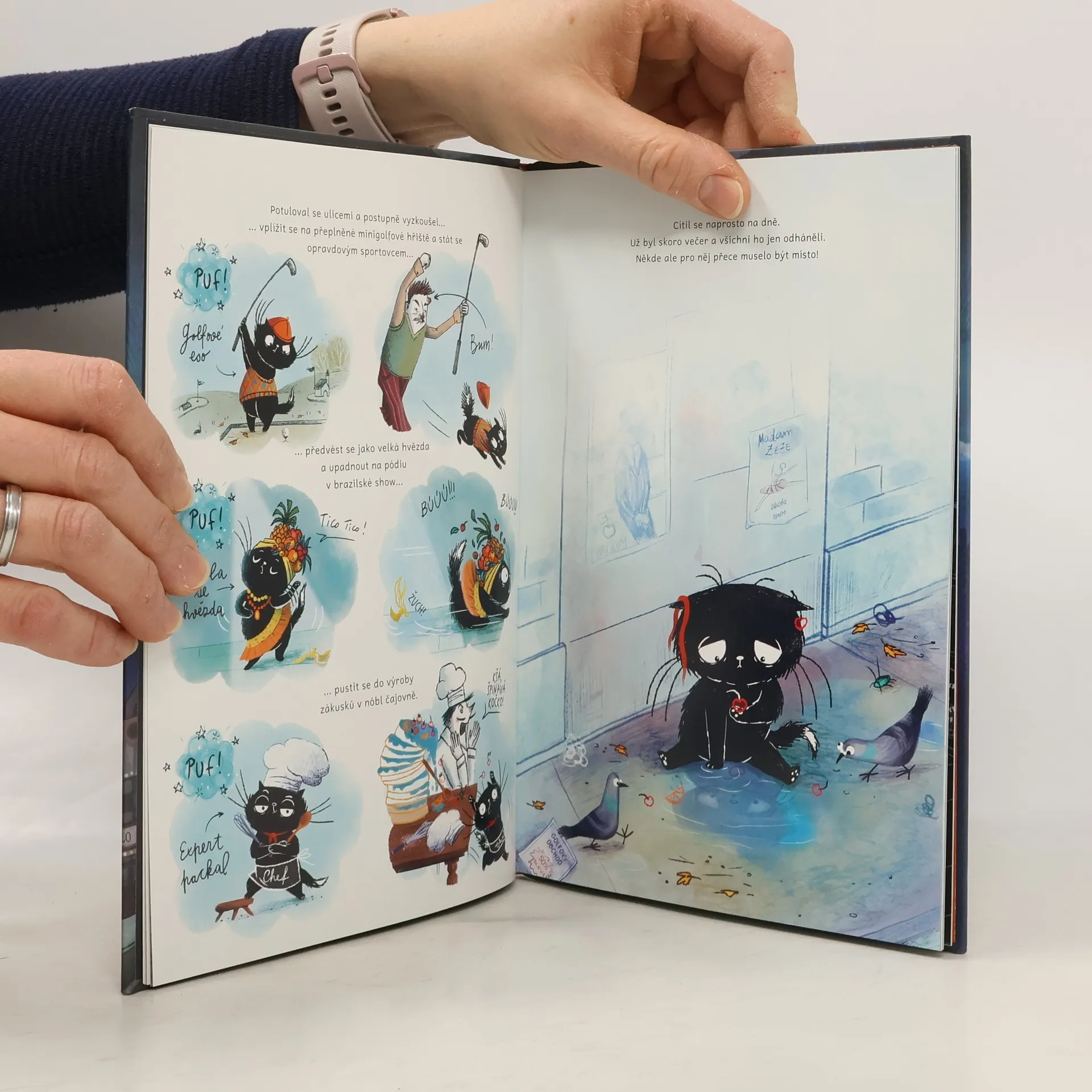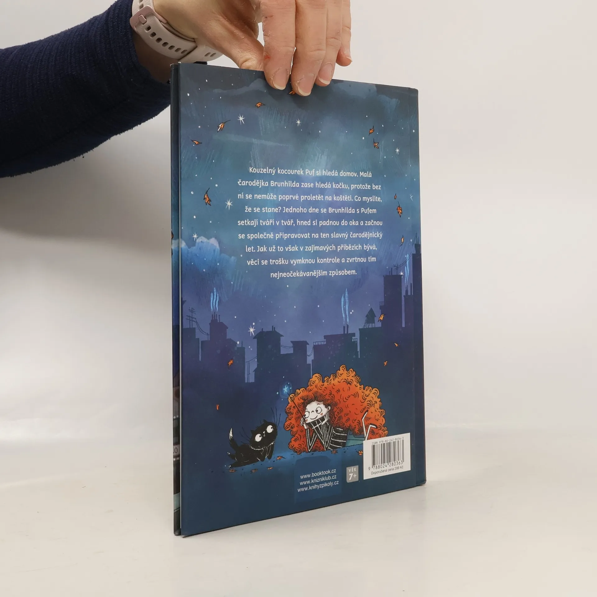 Puf je černý kocourek, tedy pokud nepočítáte bílou špičku ocásku. Když zavře oči a vydechne, dějí se magické věci. Přestože je Puf tak výjimečný, pořád nemůže najít domov. V ten samý okamžik, kdy Puf zoufale hledá domov, malá čarodějka Brunhilda se připravuje na nejdůležitější okamžik svého mladého života: svůj první let na koštěti. Má to ale háček. Kočku. Brunhilda nemůže letět bez kočky! Taková jsou pravidla. Osud tomu však chtěl a jednoho dne se Brunhilda a Puf setkávají tváří v tvář. Stačí mrknutí, široký úsměv a už se spolu připravují na velkou událost. Nebyl by to ovšem zajímavý příběh, kdyby se věci tak trochu nevymkly kontrole a nezvrtly se tím nejneočekávanějším způsobem.