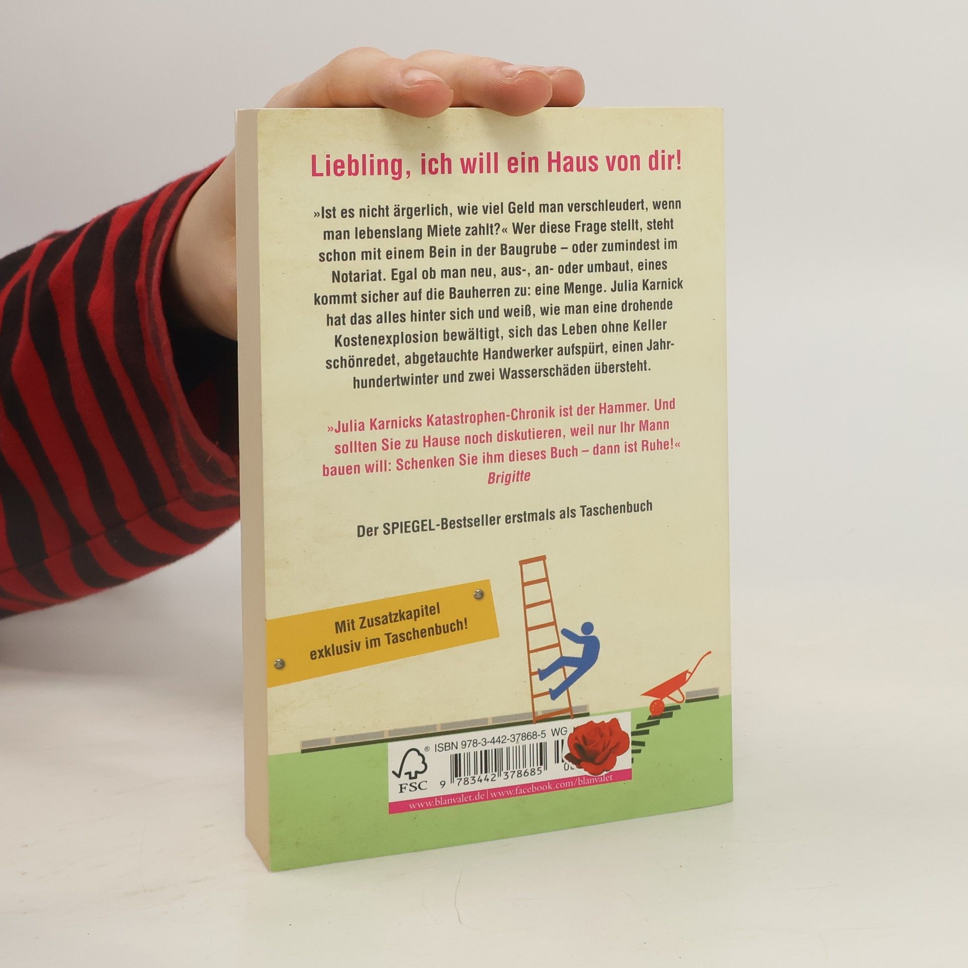 Das ideale Geschenk zum Hauskauf, Richtfest oder Einzug »Ist es nicht ärgerlich, wie viel Geld man verschleudert, wenn man lebenslang Miete zahlt?« Wer diese Frage stellt, steht schon mit einem Bein in der Baugrube – oder zumindest im Notariat. Egal ob man neu, aus-, an- oder umbaut, eines kommt sicher auf die Bauherren zu: eine Menge. Julia Karnick hat das alles hinter sich und weiß, wie man eine drohende Kostenexplosion bewältigt, sich das Leben ohne Keller schönredet, abgetauchte Handwerker aufspürt, einen Jahrhundertwinter und zwei Wasserschäden übersteht.