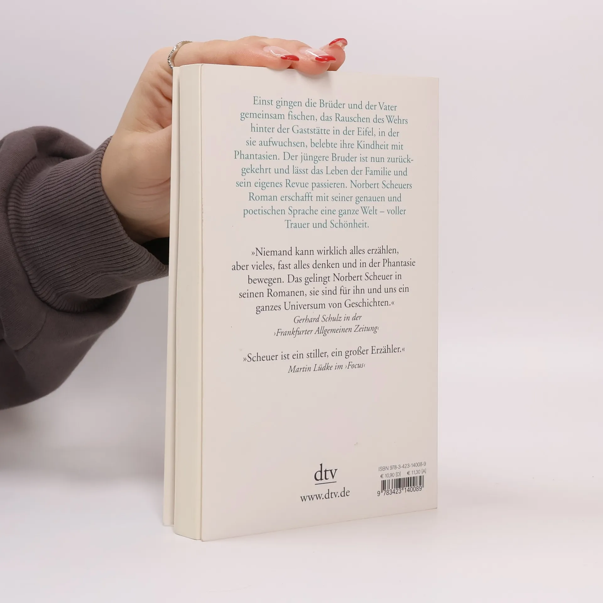 »Scheuer ist ein stiller, ein großer Erzähler.« Martin Lüdke im ›Focus‹ Einst gingen die Brüder und der Vater gemeinsam fischen, das Rauschen des Wehrs hinter der Gaststätte in der Eifel, in der sie aufwuchsen, belebte ihre Kindheit mit Phantasien. Der Vater aber, der immer auf der Suche nach einem mythischen Urfisch war, ist lange tot. Hermann, der ältere Bruder, musste in die Klinik. Der jüngere Bruder ist zurückgekehrt und lässt das Leben der Familie und sein eigenes Revue passieren. Norbert Scheuers Roman erschafft mit seiner genauen und poetischen Sprache eine ganze Welt – voller Trauer und Schönheit. • Shortlist des Deutschen Buchpreises 2009