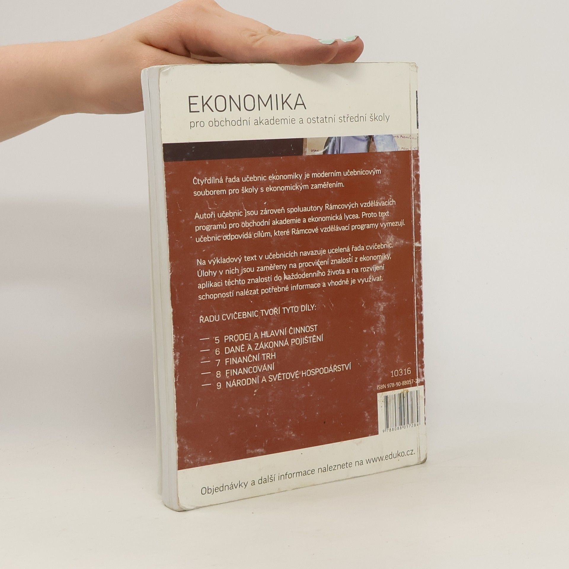 3 díl, tato učebnice je věnována penězům v různých souvislostech. Nejprve se zabývá finančním trhem a seznamuje s bankovními produkty, se spořením, úvěrováním a v závěru kapitoly s pojištěním. Na finanční trh navazuje kapitola o daních, která obsahuje vysvětlení celého systému daní až ke konkrétním postupům, jak daně počítat a platit. Na závěr je kapitola o financování. Zabývá se zdroji financování, použitím financí a v souladu s nejmodernějšími poznatky řeší i problematiku osobních financí.