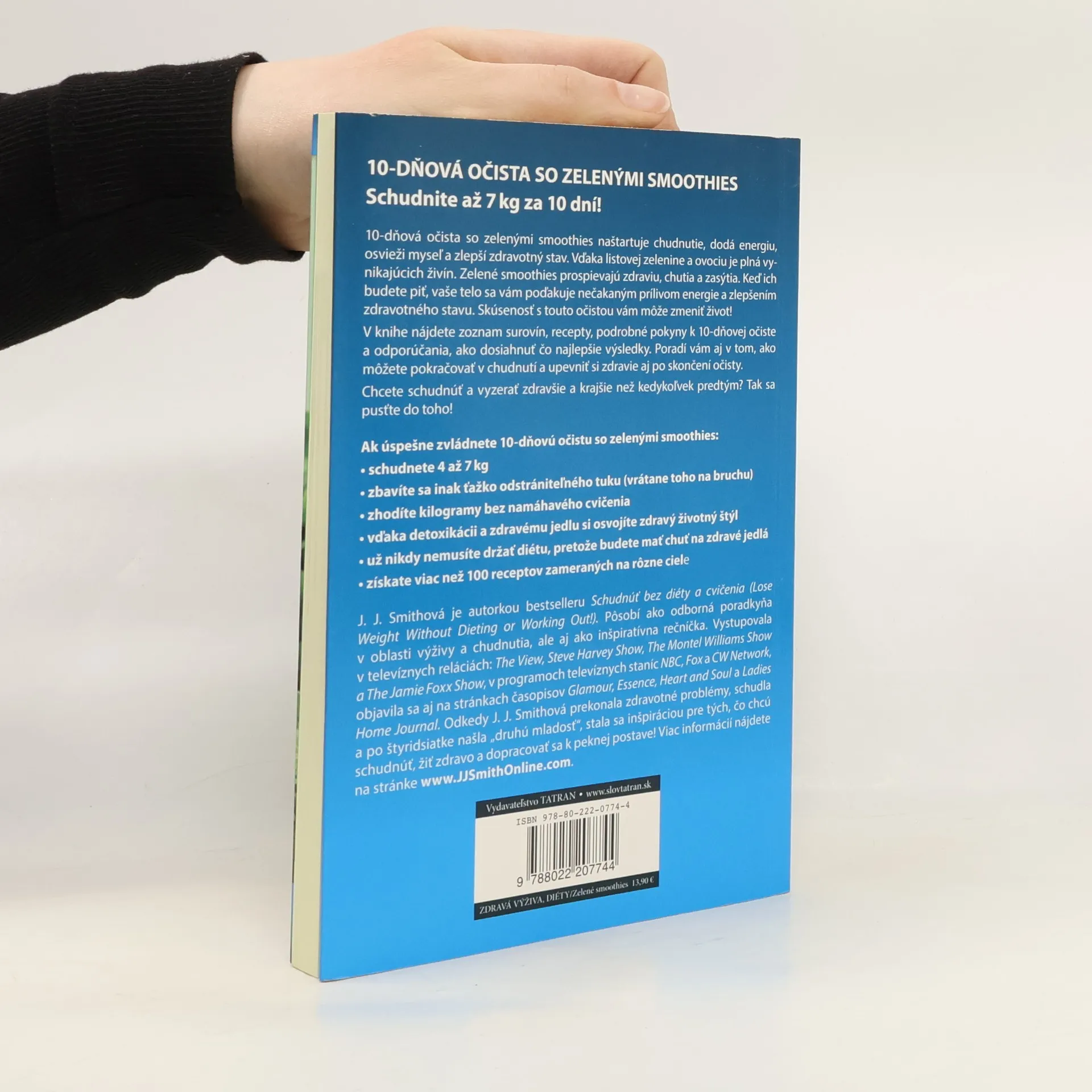 Boj s nadváhou je mimoriadne náročný a vyčerpávajúci. Napriek veľkému počtu zaručených diét, cvičebných postupov a zázračných tabletiek je obyvateľstvo planéty Zem čoraz tučnejšie. Ak sa vám aj podarí znížiť hmotnosť, deväťdesiatpäť percent z vás sa do troch rokov vráti na pôvodnú váhu. Čo teda pomôže? J.J. Smithová jednoznačne hovorí, že zmena životného štýlu. Desaťdňová očista má nastaviť vaše chuťové poháriky tak, aby ste si žiadali zdravšie jedlá. Podľa autorky je dôležité, aby sa ľudia v prvom rade zbavili toxínov, ktoré prijímajú v každodennej strave. Vo svojej knihe odporúča programy, ktoré sa zameriavajú na chudnutie prostredníctvom odbúravania tukov a detoxikácie, čo vedie k celkovému zlepšeniu zdravia a nadobudnutiu životnej rovnováhy. V knihe nájdete okrem 10-dňovej očisty viac ako 100 receptov na zelené smoothies s rôznymi účinkami.